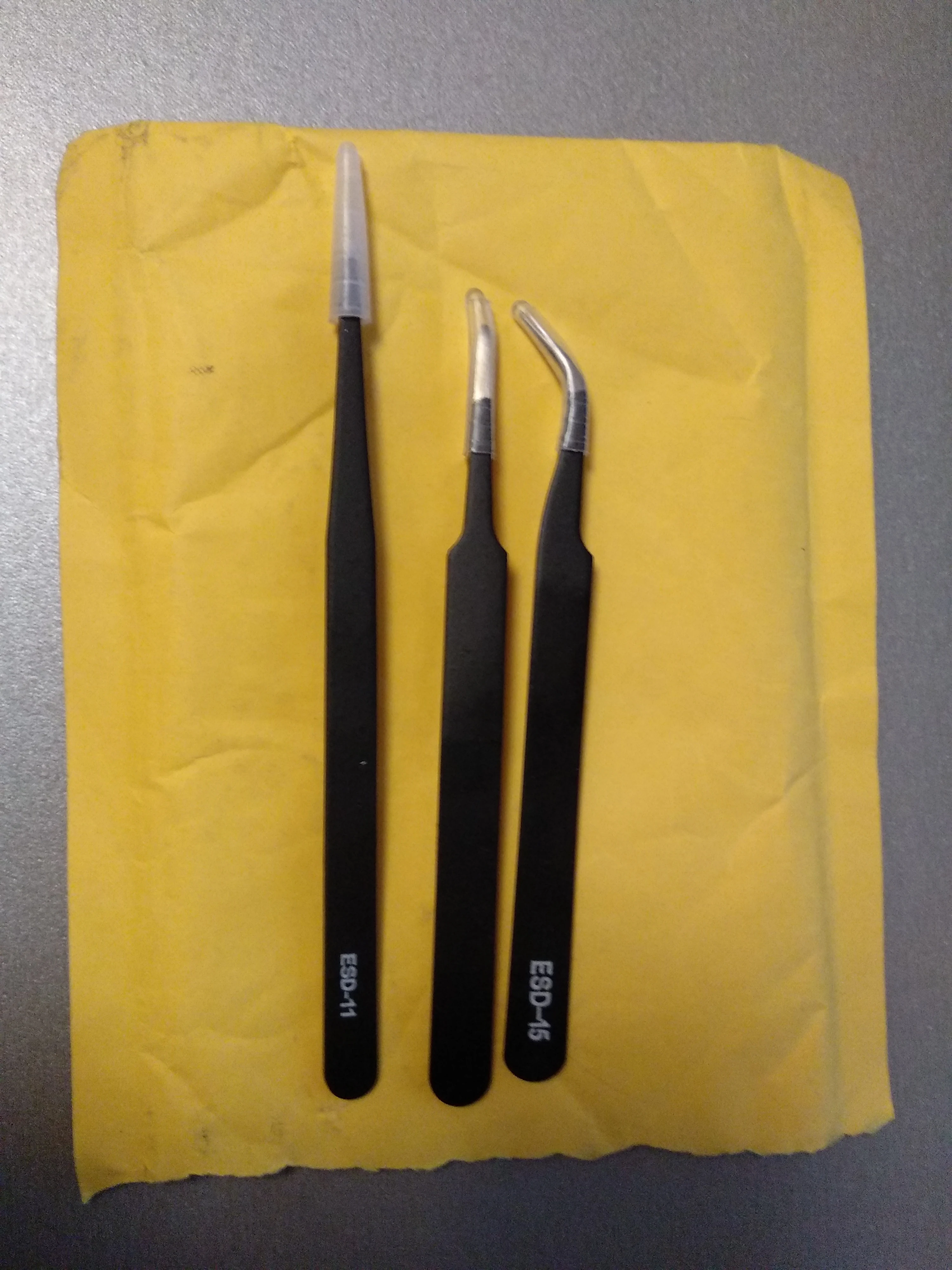 Посылка пришла за 20 дней до Воронежа. Как по мне очень высокий ценник за какие-то спаянные к друг другу железячки) Пинцеты имеют антистатическое покрытие. Ими удобно работать.