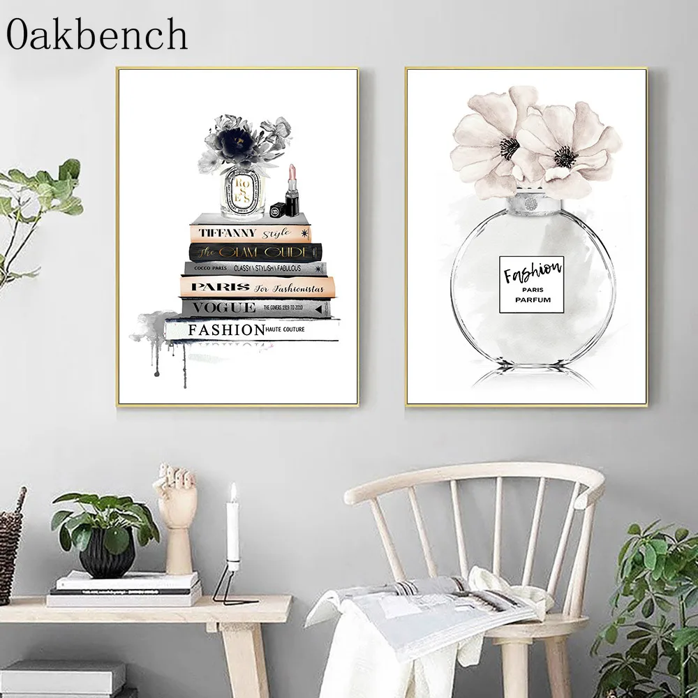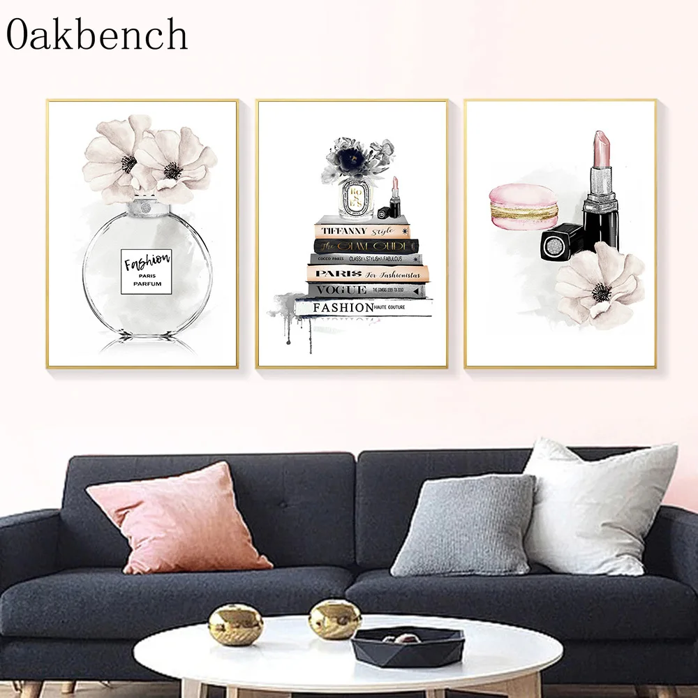 Флакон духов, плакаты и принты, модный плакат, макияж, холст, искусство, картина, Париж, Современная книжная печать, Современная комната для девочек, домашний декор