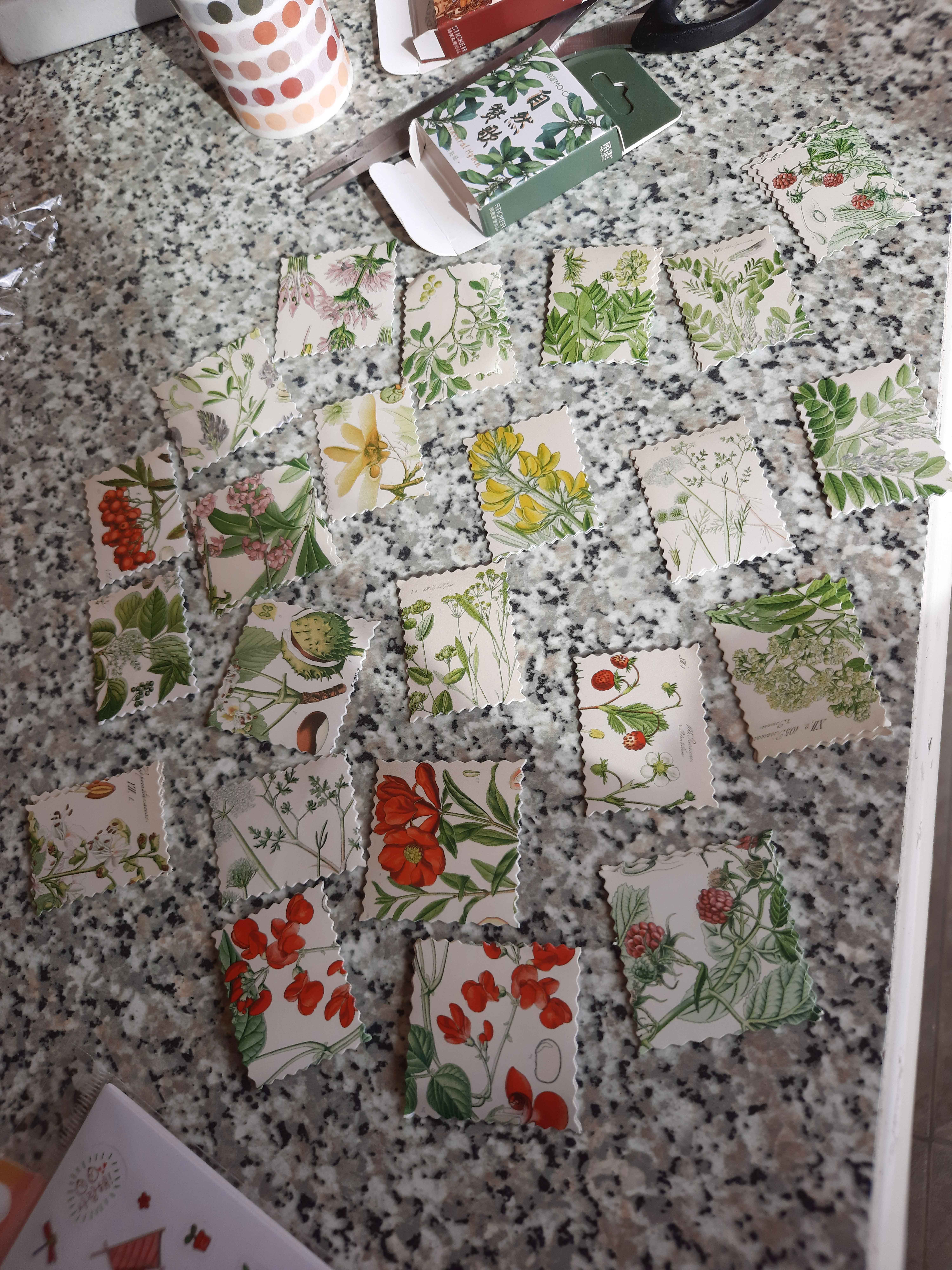 Некоторые наклейки пришли помятые. В жизни растения выглядят бледновато и очень похожи друг на друга. Каждой наклейки по 2 штуки, то есть есть повторки.