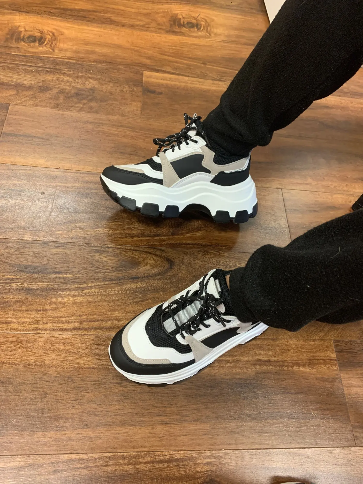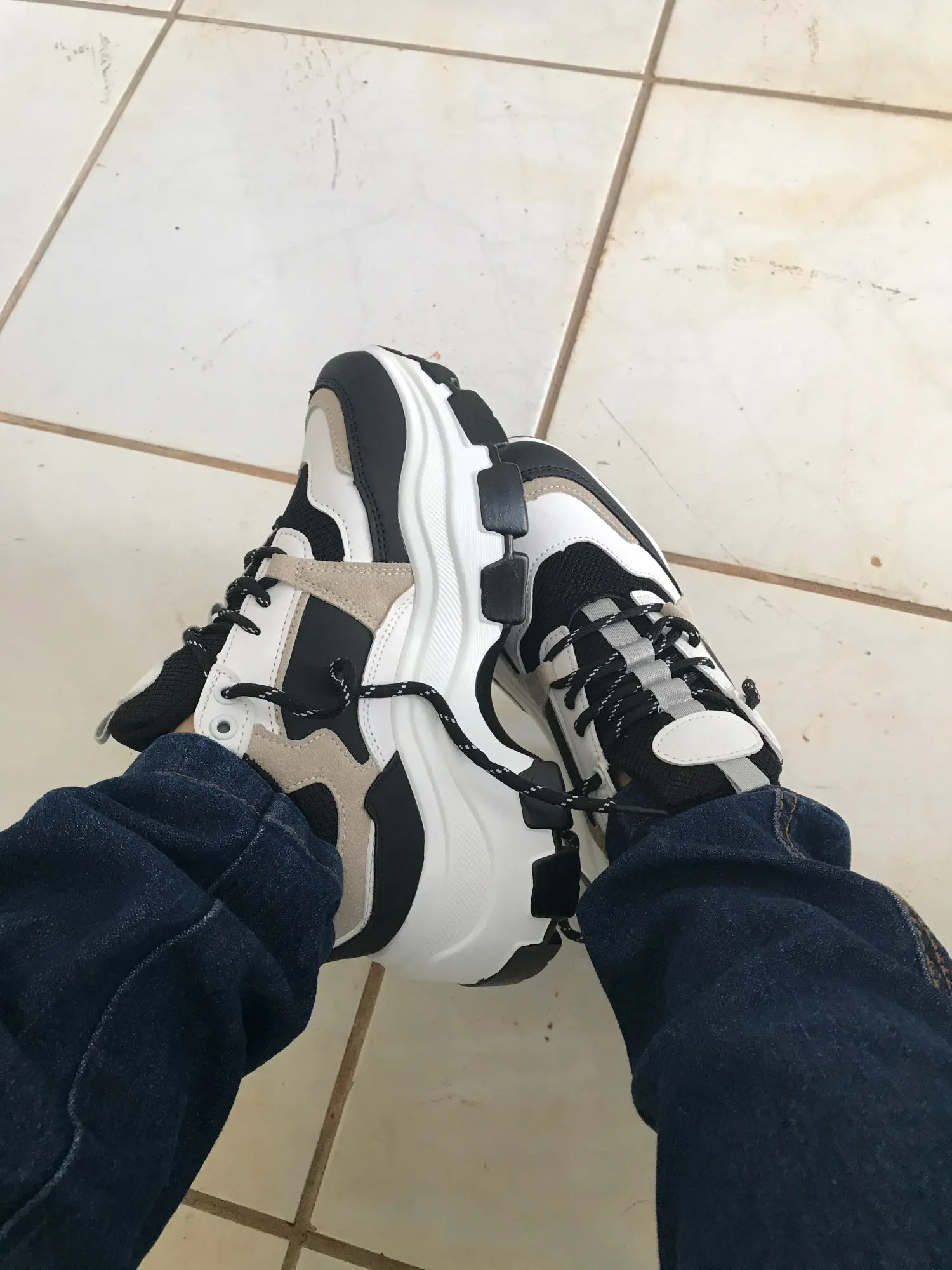 Женские кроссовки на массивной вулканизированной подошве, черные и белые, повседневные, 8 см