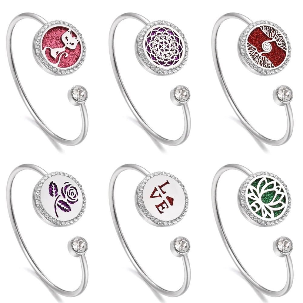 Новый браслет для ароматерапии из нержавеющей стали Ароматический диффузор медальоны духи эфирное масло диффузор браслет Древо жизни браслеты