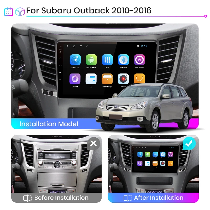 >> Junsun V1 для Subaru Outback 2010-2016 Функция> Основные функции: Android 10.0 + 9-дюймовый IPS-экран + четырехъядерный процессор 1,2 ГГц (восемь ядер 1,8 ГГц дополнительно) + флэш-память DDR3 1 ГБ (2 ГБ / 4 ГБ / 6 ГБ дополнительно) + 16 ГБ памяти (32 ГБ / 64 ГБ / 128 ГБ дополнительно) + WIFI ( Сеть 4G опционально) + Зеркальное соединение + Управление рулевым колесом + RDS / DSP (опционально)> Специальные функции:1. PIN-код к PIN-коду: кабель питания радио Junsun - это контактный штырь, прост в установке;2. Встроенный Carplay / Android Auto: поддержка версии V1 / V1Pro, просто используйте телефонный кабель, подключите его, стабильный и простой в использовании;3. Поддержка подголовника: поддержка только версии Junsun V1;Дополнительные аксессуары> Управление голосом AI: просто произнесите командное слово, управляйте радио без рук, сделайте вождение более безопасным> Камера ADAS DVR, мониторинг давления в шинах, OBD2, внешний микрофон, кабель RCA;