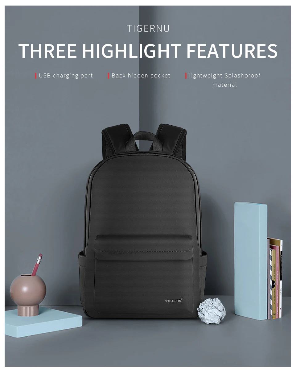Бренд Tigernu, Новое поступление, водонепроницаемые Модные мужские рюкзаки из ТПУ, 15,6-дюймовый школьный рюкзак для ноутбука, сумки, светильник, женские рюкзаки