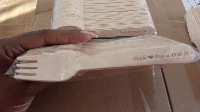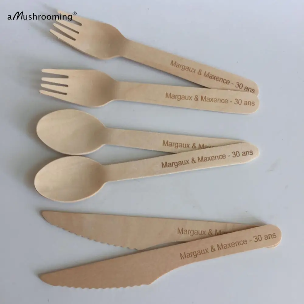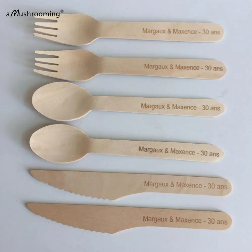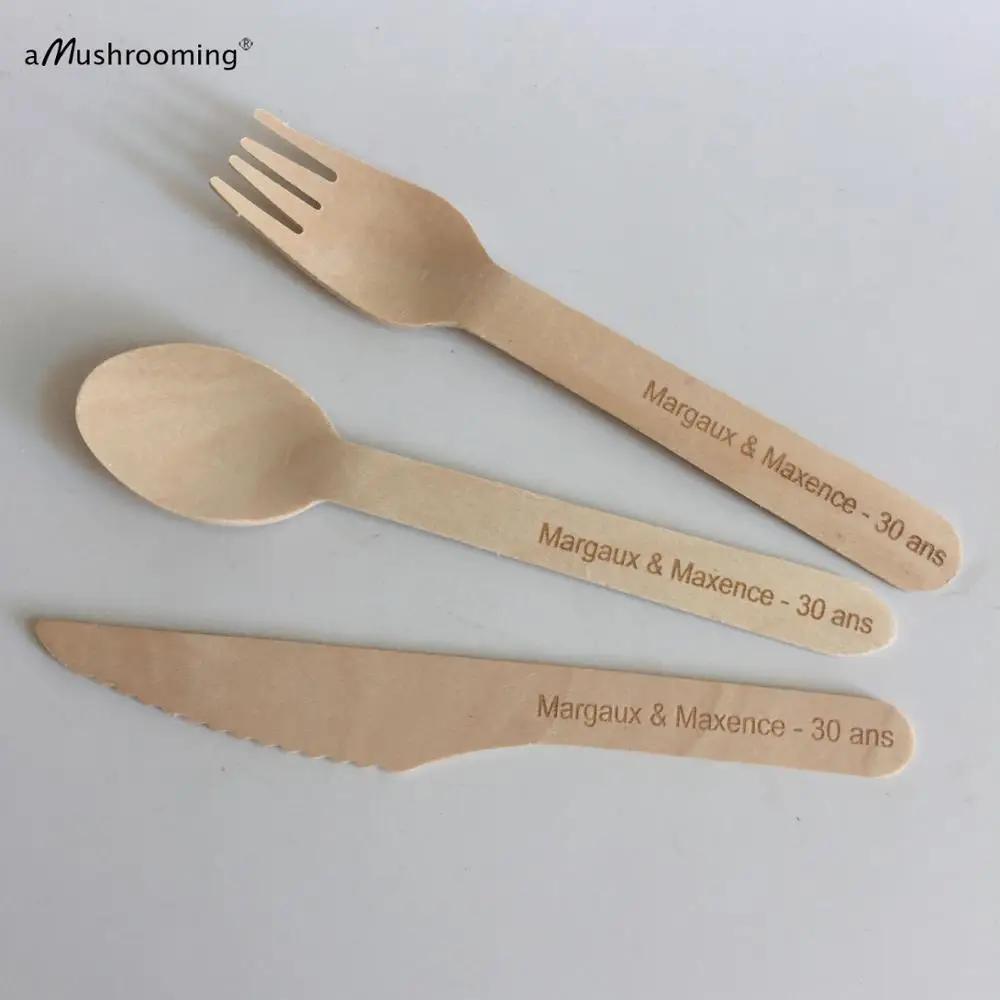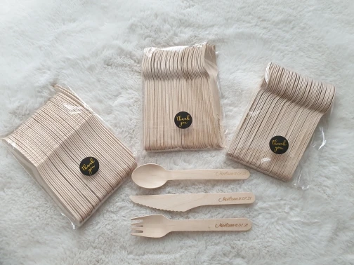 150 деревянные быстрое одноразовые ложки, вилки, ножи, товары вечерние, посуда для вечерние НКИ, можно написать текст на заказ, на день рождения, годовщину