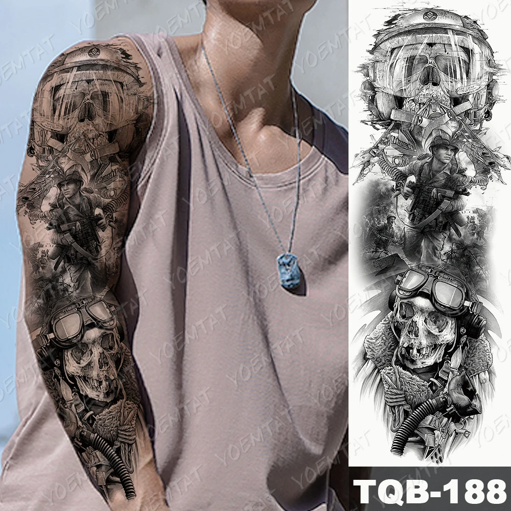 Большая рука рукав тату самолет солдат пилот Водонепроницаемая временная татуировка наклейка парусный компас боди арт полный поддельный тату для женщин