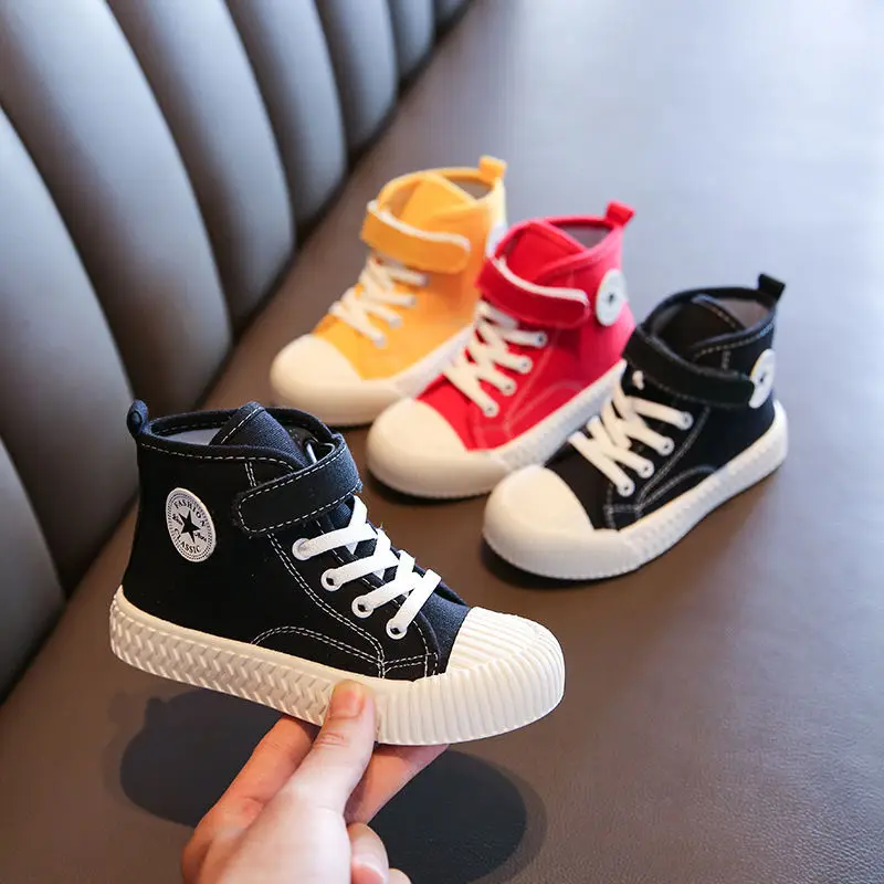 Детская парусиновая обувь, высокие кеды для мальчиков и девочек, белые туфли ярких цветов для детского сада
