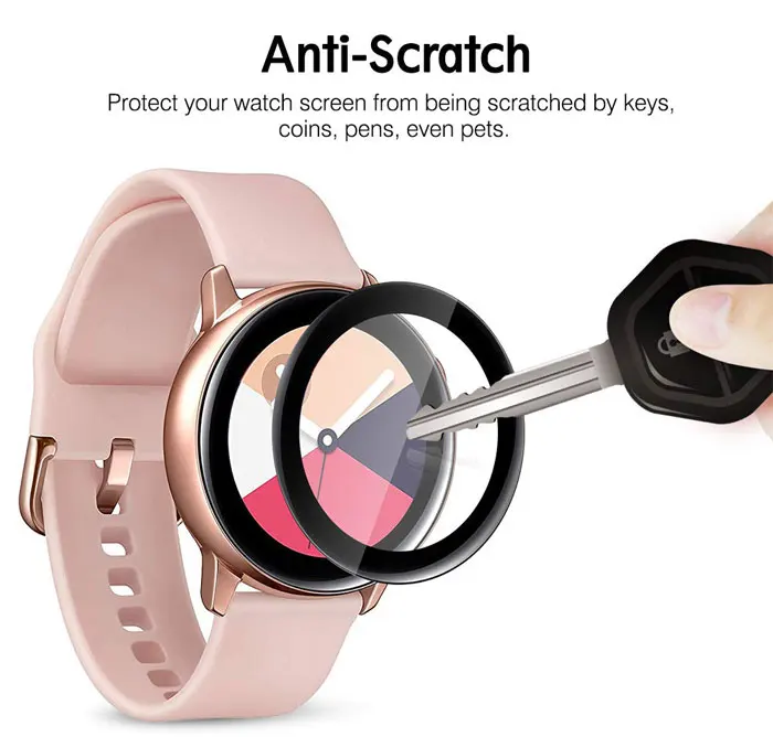 Уникальный дизайн: специальный дизайн для 2019 новых Samsung Galaxy Watch Active (40 мм). Не совместим с другими моделями. Советы: Это мягкие пленки, а не Защитные пленки из закаленного стекла. Высокое качество: эти защитные пленки для Samsung galaxy watch active изготовлены из высококачественных гибких материалов. Использование революционного процесса, который сливает высокую чувствительность к отклику, самовосстанавливающуюся долговечность и не пожелтение, оптическую прозрачность в один слой гибкой, но жесткой пленки. Без пузырей. Кристально чистый: клейкая поверхность мягкой защитной крышки хорошо сработала, после нанесения не осталось пузырьков. При установке было легко избавиться от пузырьков, и он поместился как влитой. Чувствительное прикосновение: никак не препятствует использованию смарт-часов galaxy watch active, вы можете легко провести по экранам без проблем. Прикосновение к дисплею для управления вещами, такими как пролистывание меню или изменение музыкальных треков, работало так же, как и с открытым экраном. Сохранители защитной пленки на самом деле выглядят так, будто они являются частью фитнес-трекера. Простота установки: защитная крышка EZCO для galaxy watch active невероятно проста в установке. Чехол для активного экрана Galaxy watch имеет закругленные края, благодаря чему он остается лучше, легко удаляется с грязи и отпечатков пальцев и не темнеет, делая его отслаивающимся.