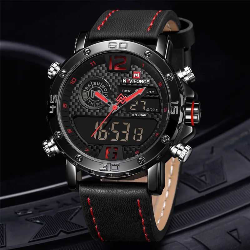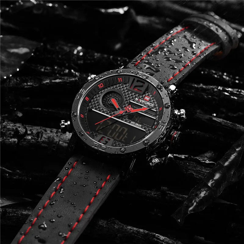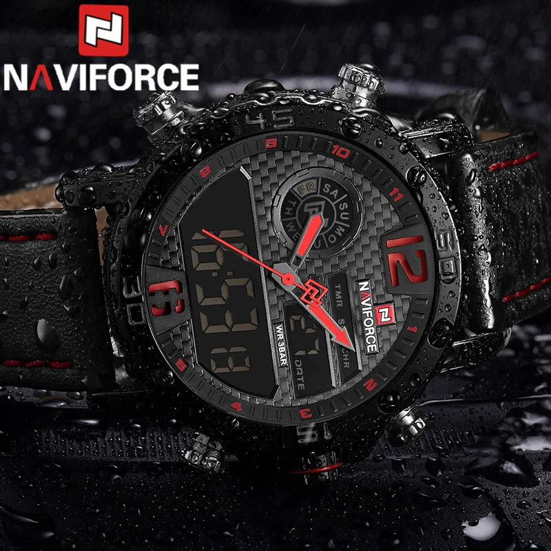 Часы наручные NAVIFORCE мужские водонепроницаемые, спортивные армейские в стиле милитари, с двойным дисплеем, черные
