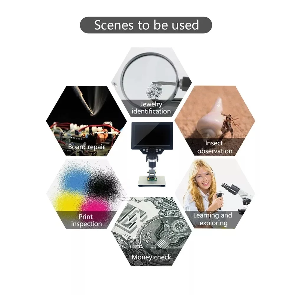Цифровой микроскоп muтабурет G1200 1200X, электронный видеомикроскоп, 7-дюймовый ЖК-дисплей, 12 МП, лупа для ремонта телефона со встроенной батареей