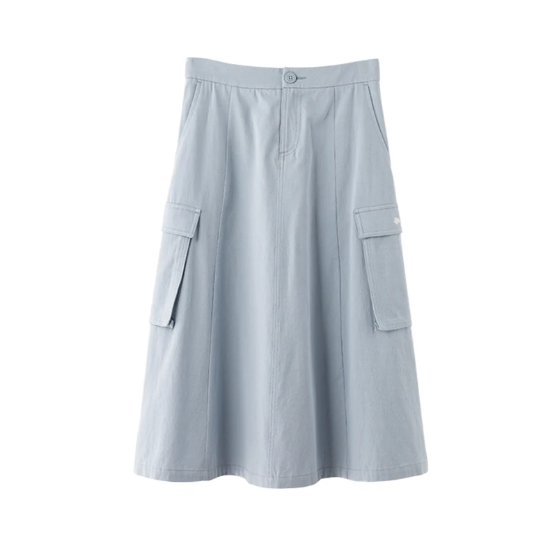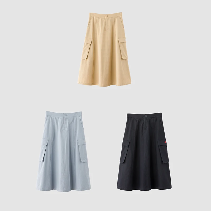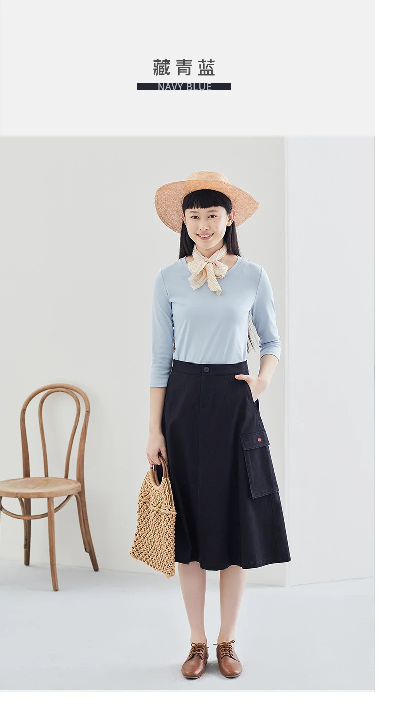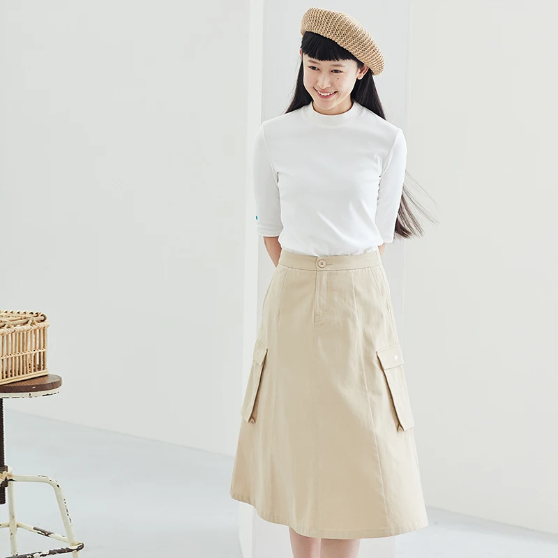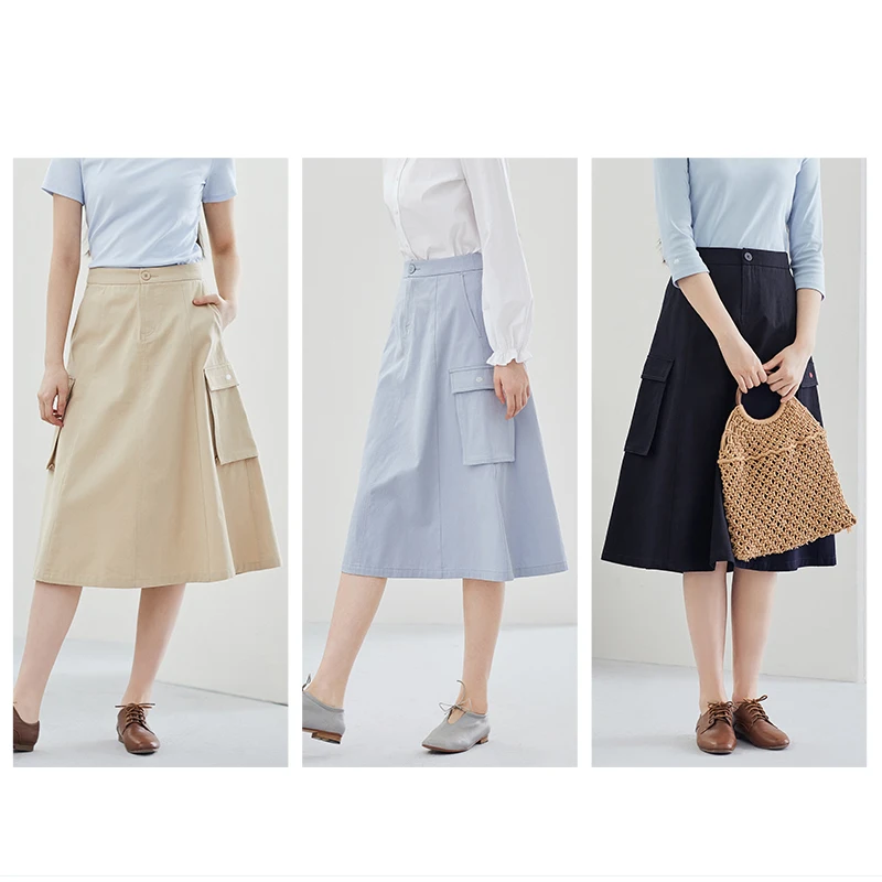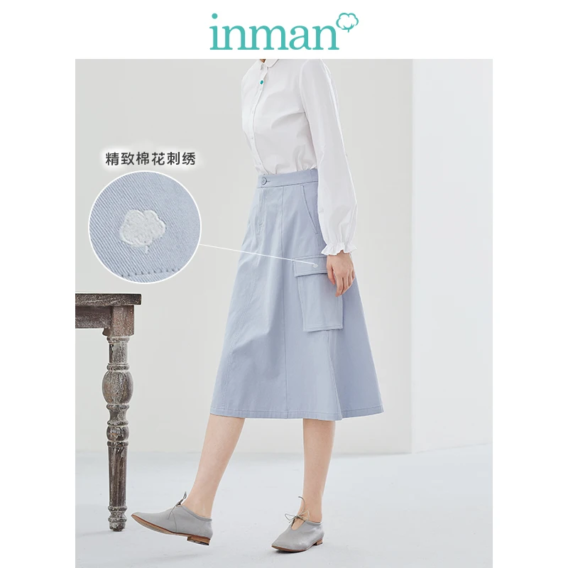INMANОсенняя однотонная хлопковая юбка-трапеция средней длины с высокой талией в Корейском стиле