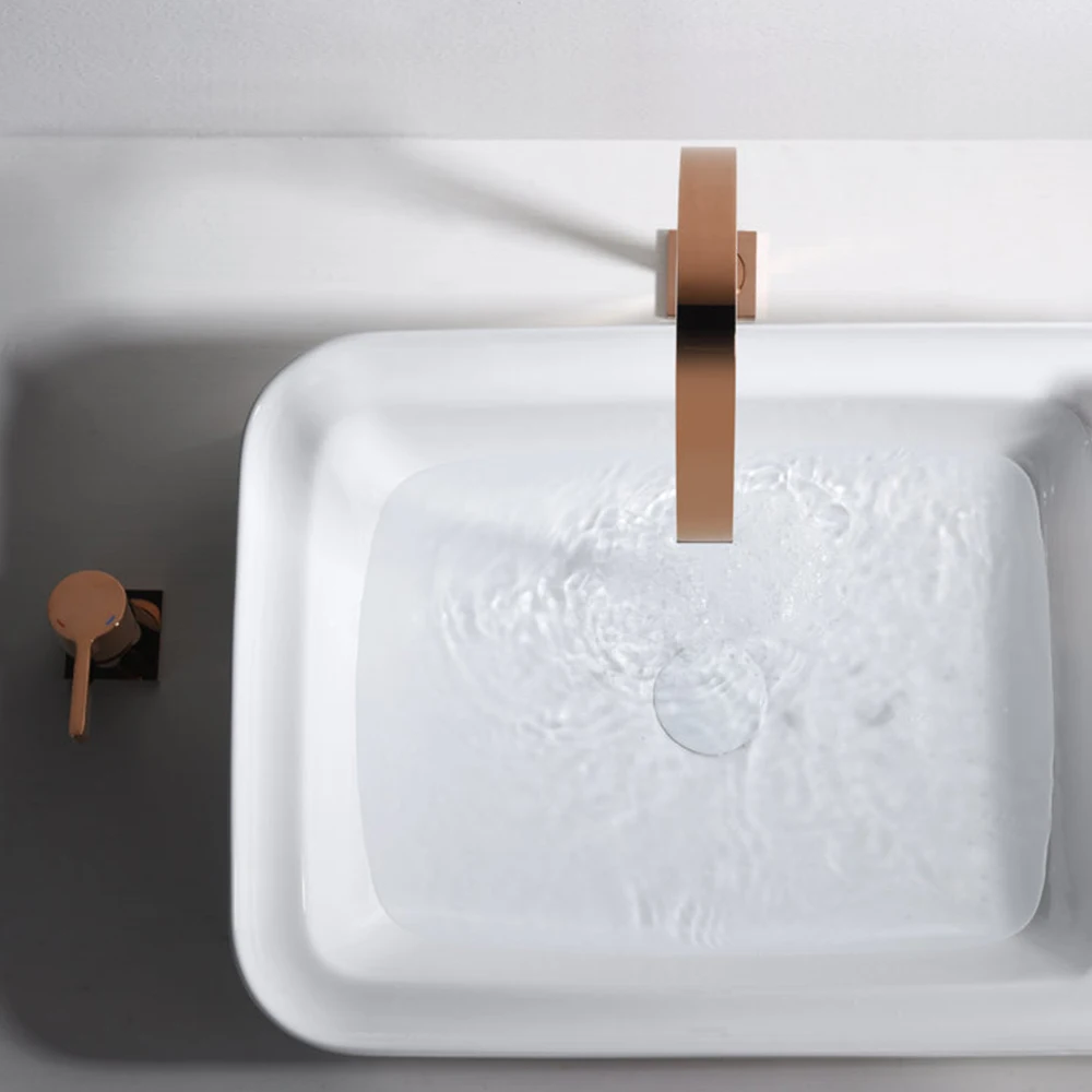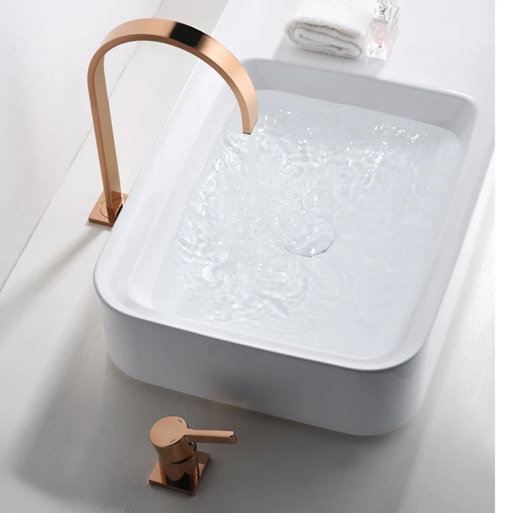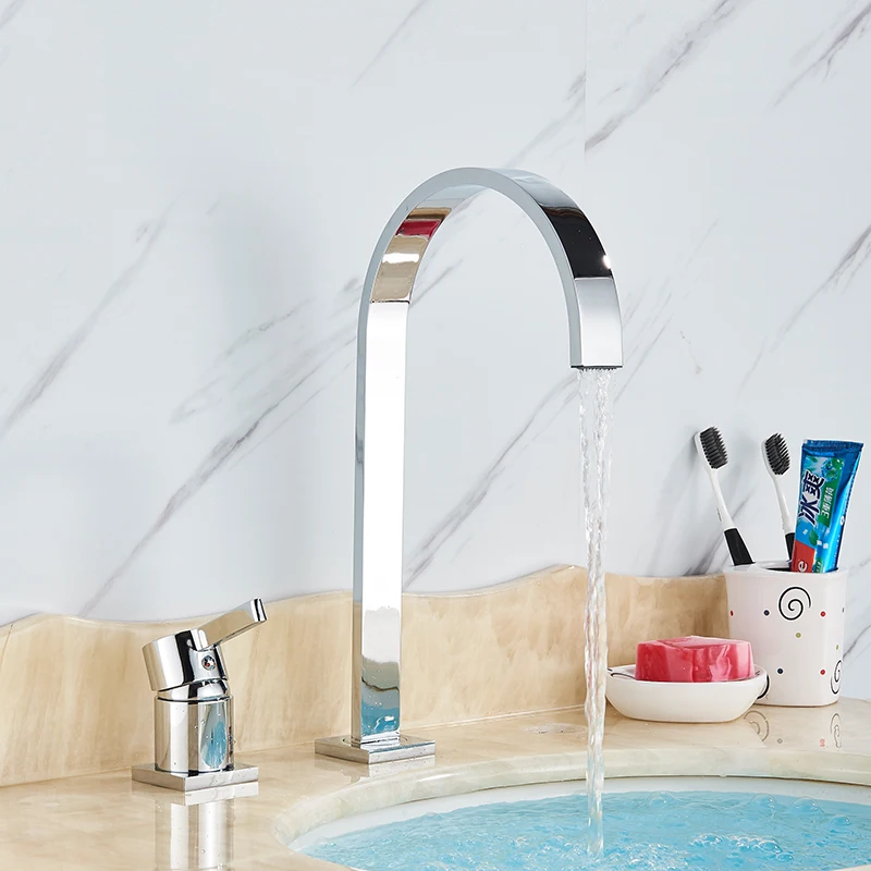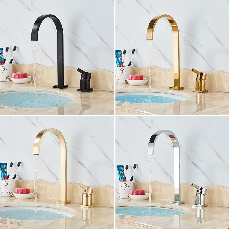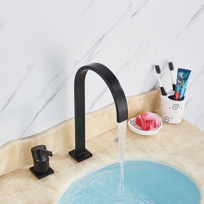 Смеситель для раковины из розового золота, сверхдлинный водопроводный кран для ванной, с двумя отверстиями, с поворотом 360 градусов, матовый золотой