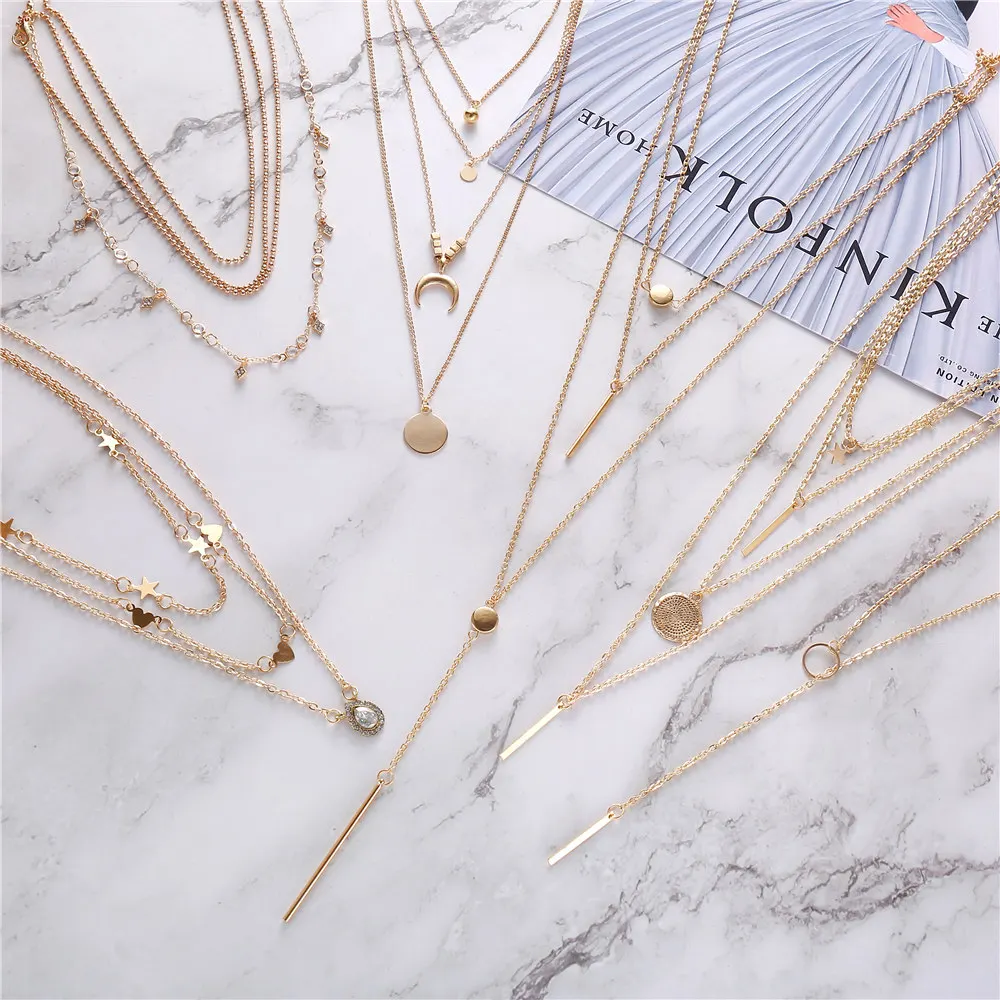 Женское Ожерелье в богемном стиле, винтажное ожерелье с кулоном в форме сердца, с кристаллами, геометрической звездой, золотого цвета, 2020