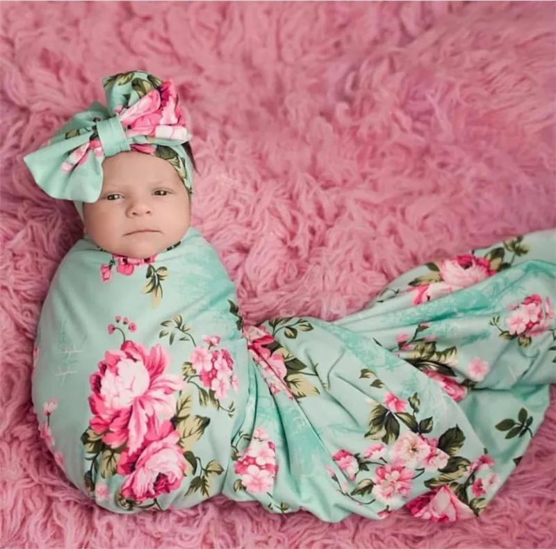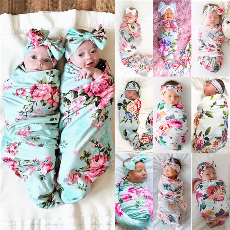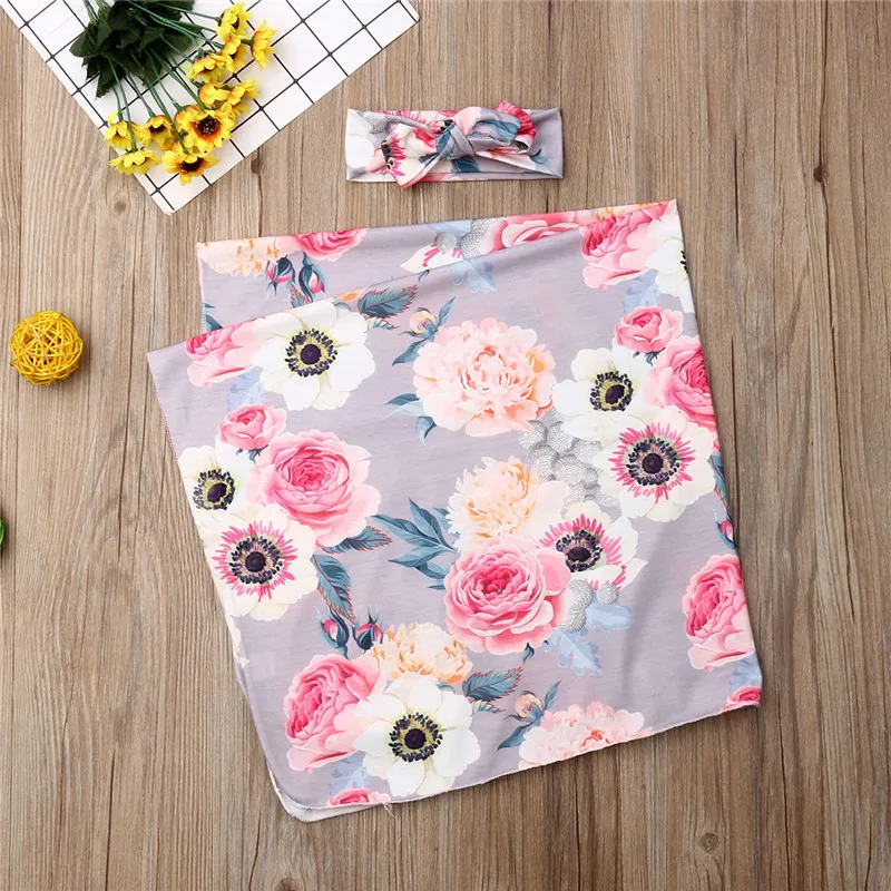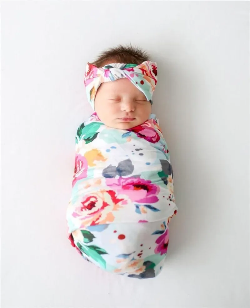 2 шт., пеленки с цветами для новорожденных девочек, одеяло для пеленания, спальный мешок + повязка на голову, 0-6 м