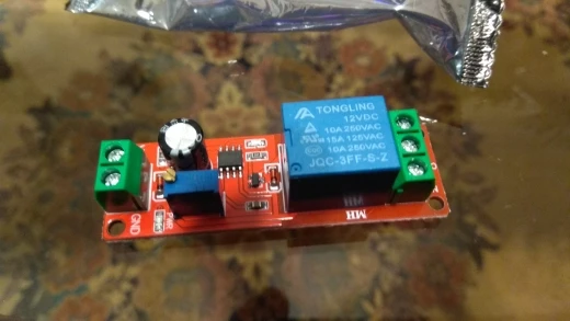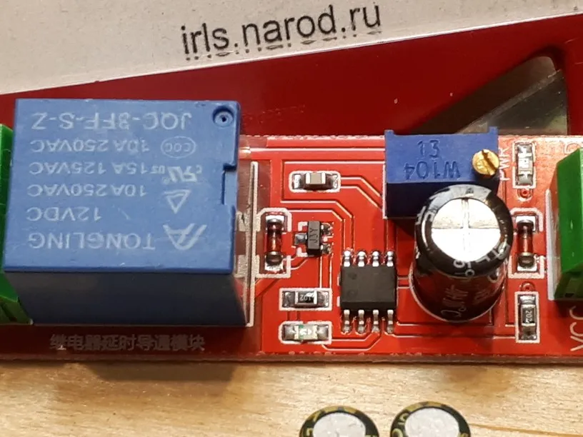 Плата работает как надо. При подаче напряжения на плату, реле не срабатывает, а перещелкивает только тогда, как пройдет время, настроенное на резисторе.
