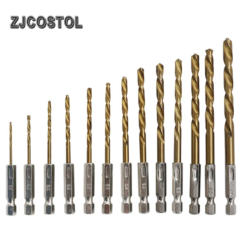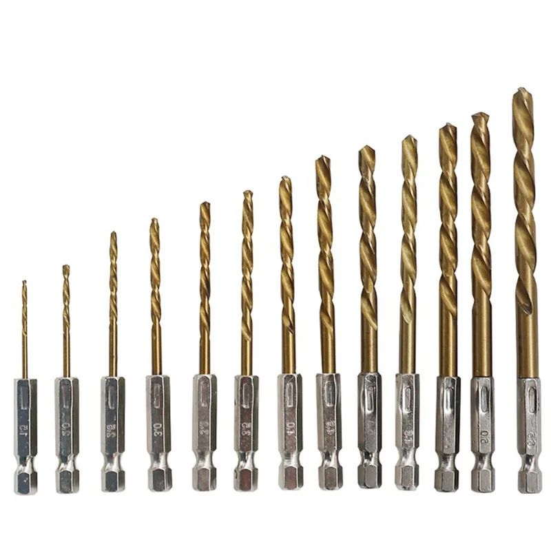Сверло из быстрорежущей стали с титановым покрытием, 13 шт., сверло с шестигранным хвостовиком 14, сверло из дерева и алюминия, тонкое железо 1,5-6,5 мм