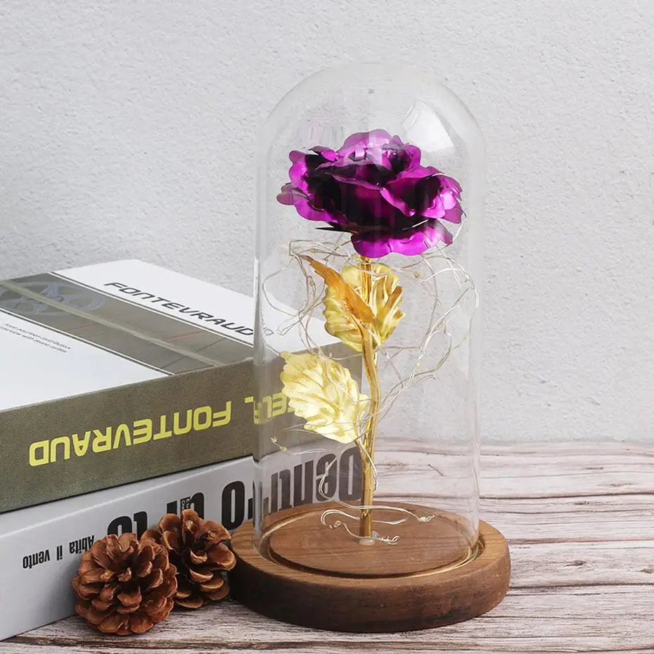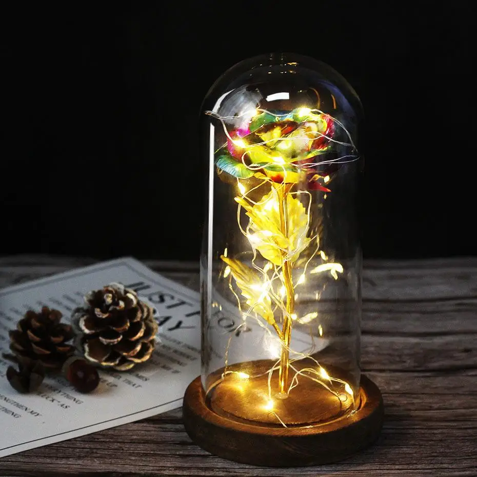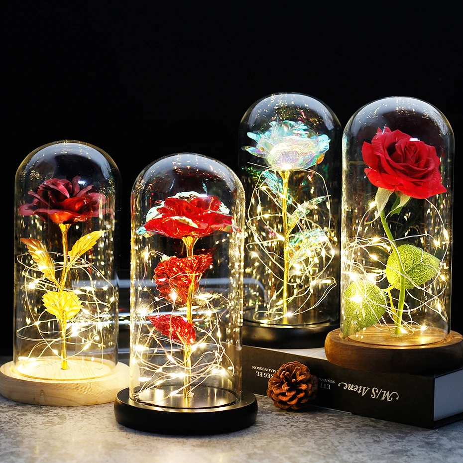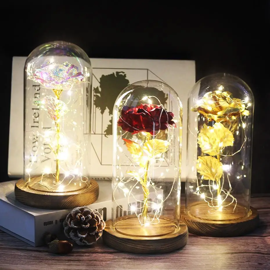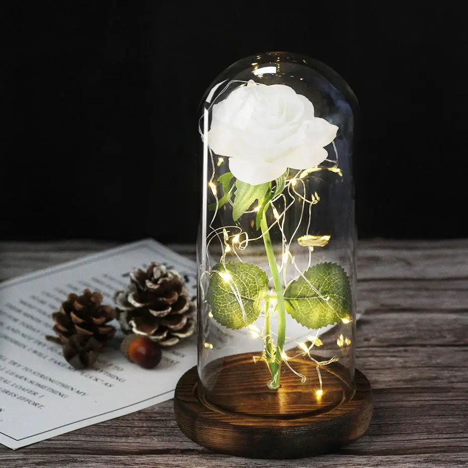 Новый светодиодный светильник, искусственные цветы с розовым стеклянным куполом, черный чехол, украшения для свадьбы, подарок на день Святого Валентина, День матери