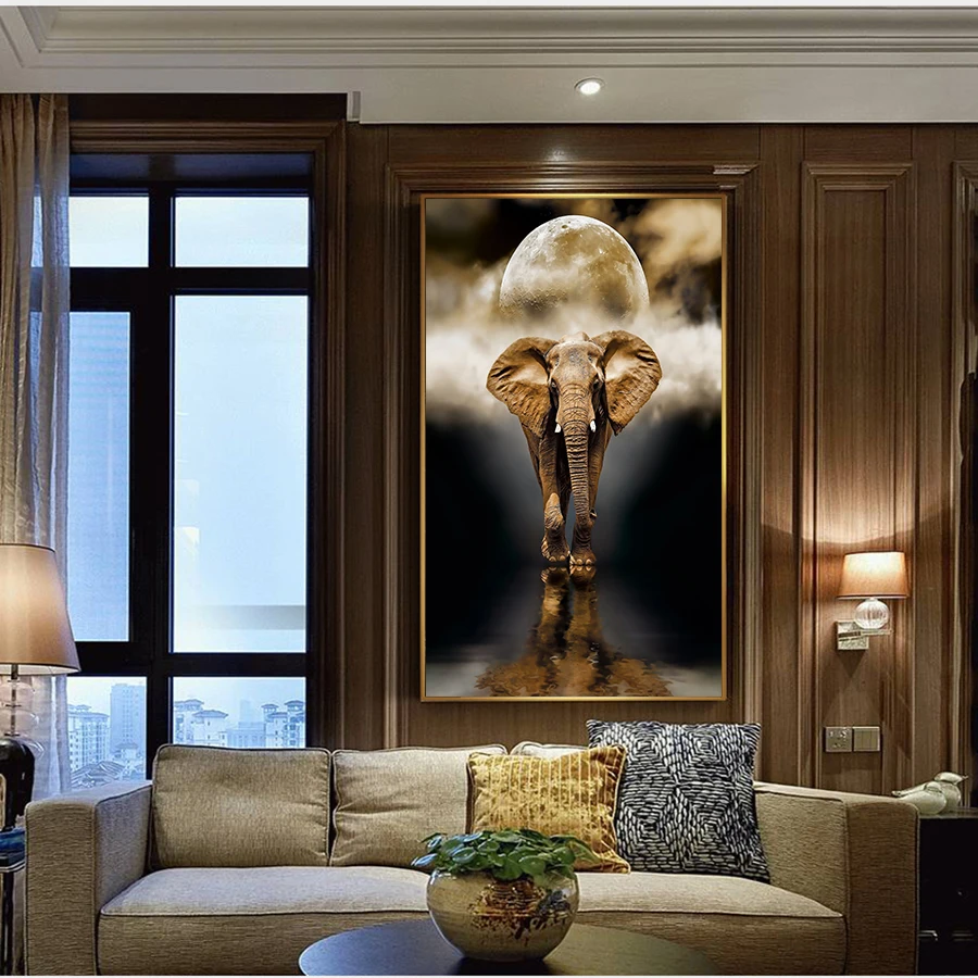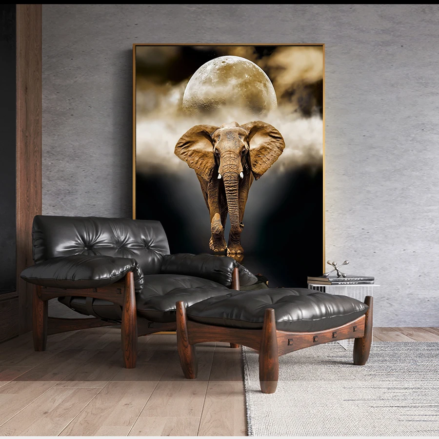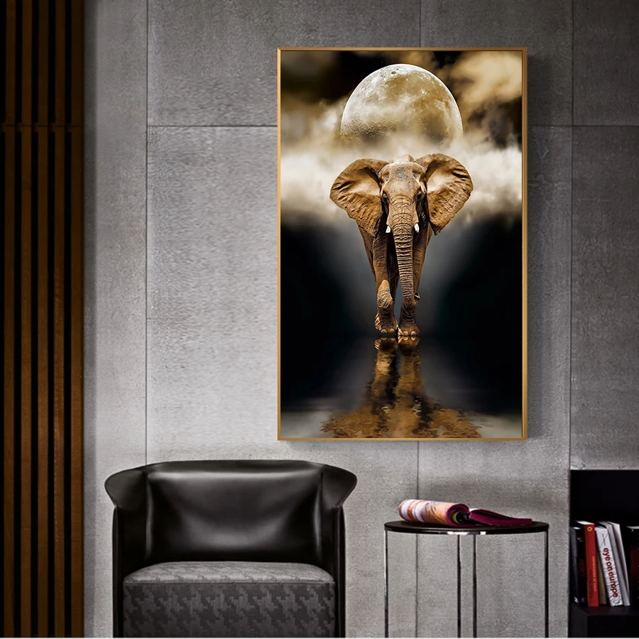 Муту ретро картина маслом золотого слона постеры с животными на холсте картина для гостиной домашний Декор без рамки