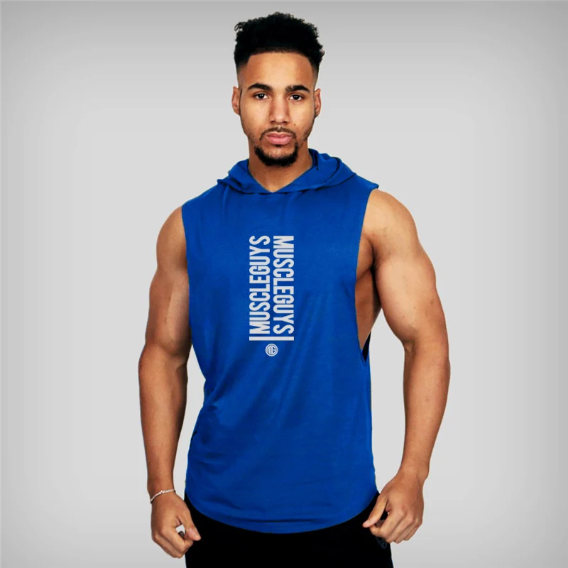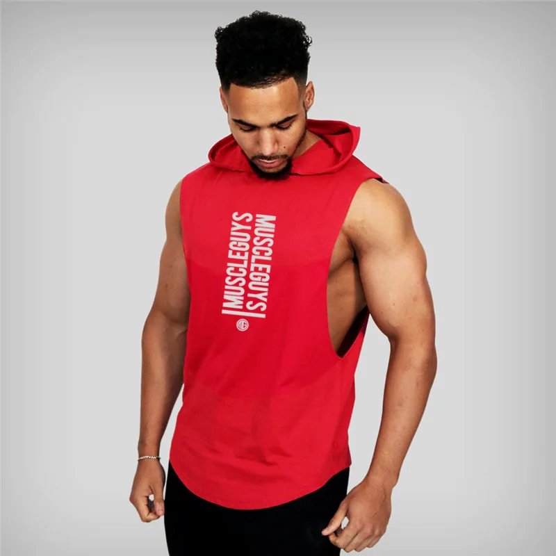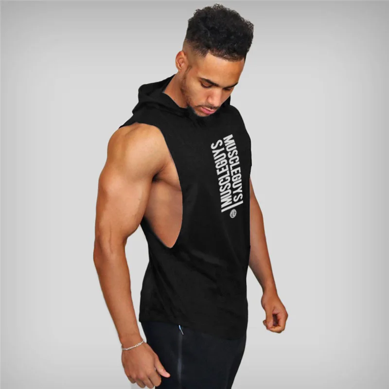 Мужской жилет для бега Muscleguys, майка для тренажерного зала, Толстовка для фитнеса, бодибилдинга, футболка без рукавов, с капюшоном, хлопковая спортивная одежда