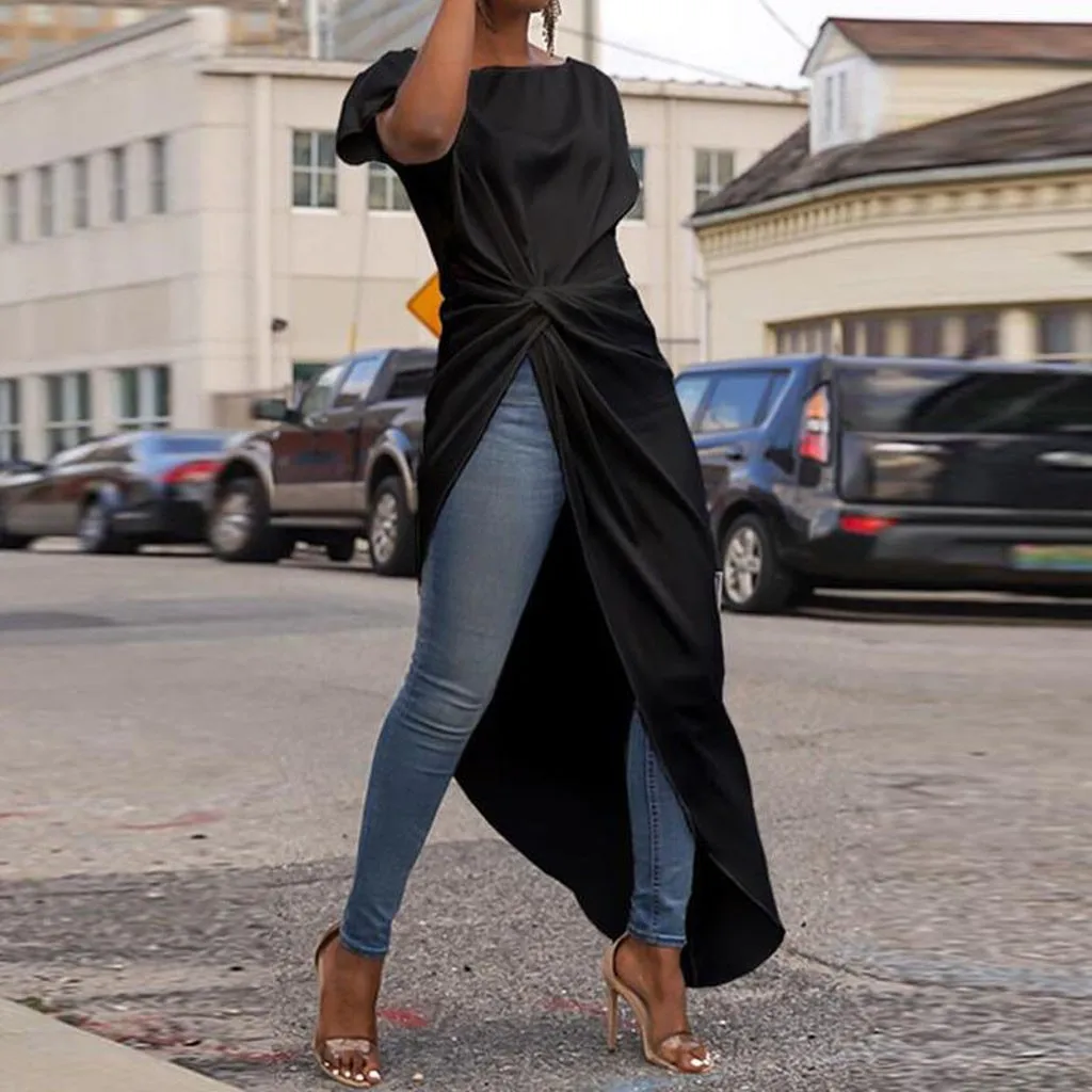 Женская Повседневная Асимметричная блузка, плиссированная рубашка с коротким рукавом, топы с ласточкиным хвостом
