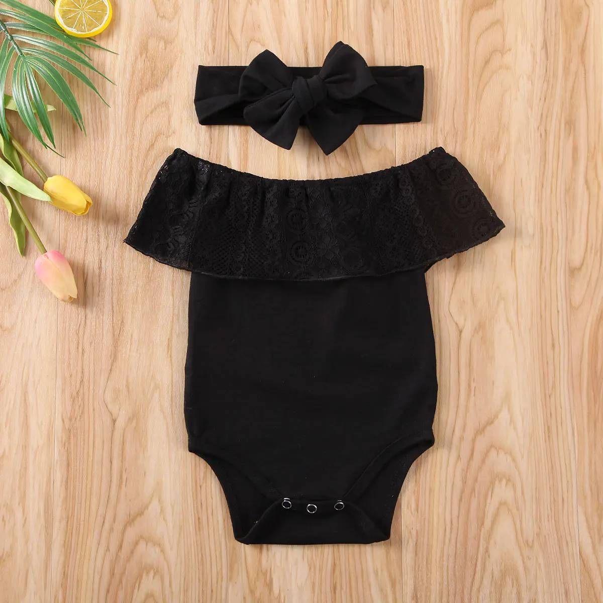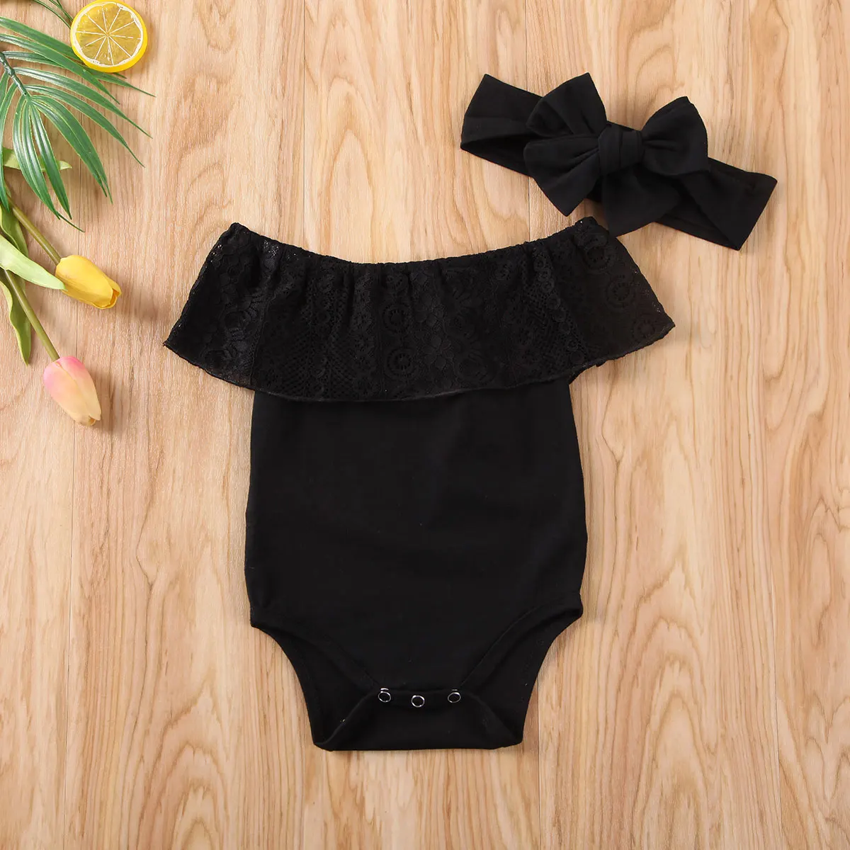 2020, летняя одежда для новорожденных, кружевная одежда для маленьких девочек, комбинезон с открытыми плечами + повязка на голову, наряд