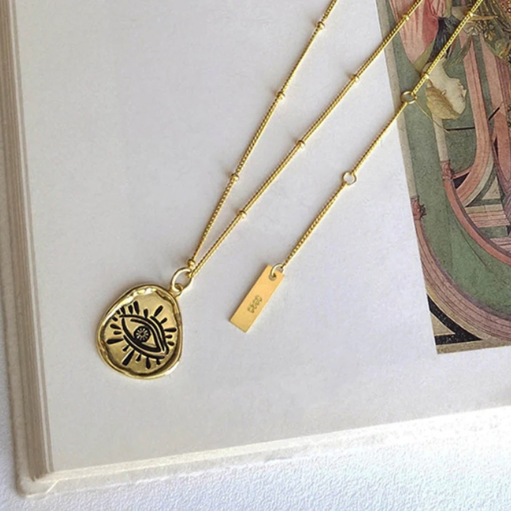 Женское Ожерелье злой глаз, серебряное ожерелье в турецком стиле из стерлингового серебра 925 пробы, ожерелье со спутниковой цепочкой в стиле ретро с монетницей Египетский Глаз гор