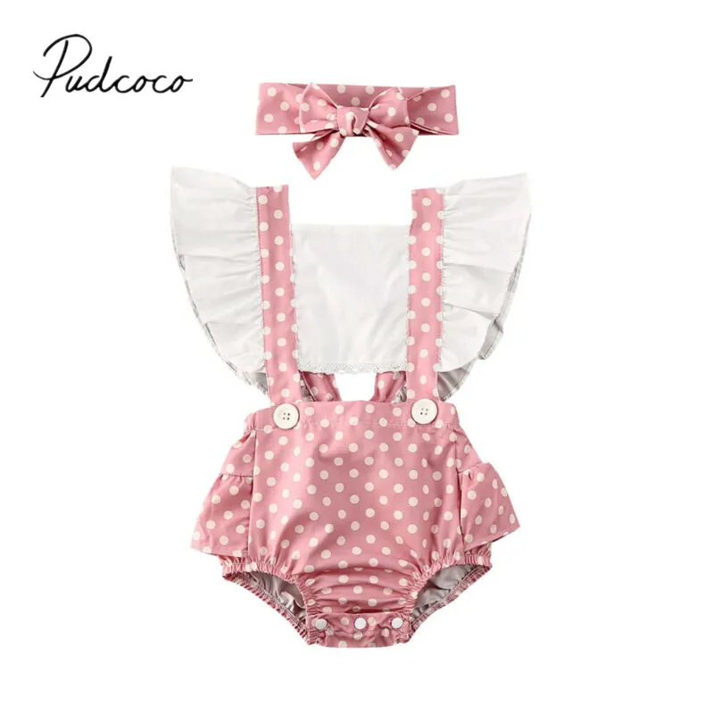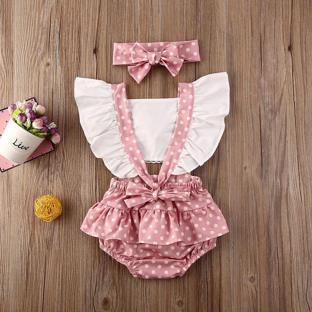 Летняя одежда для малышей 2020, комбинезон в горошек с оборками и открытой спиной для маленьких девочек, боди, повязка на голову, наряды, Лоскутные Комбинезоны