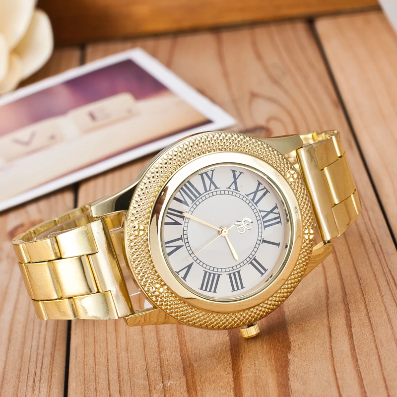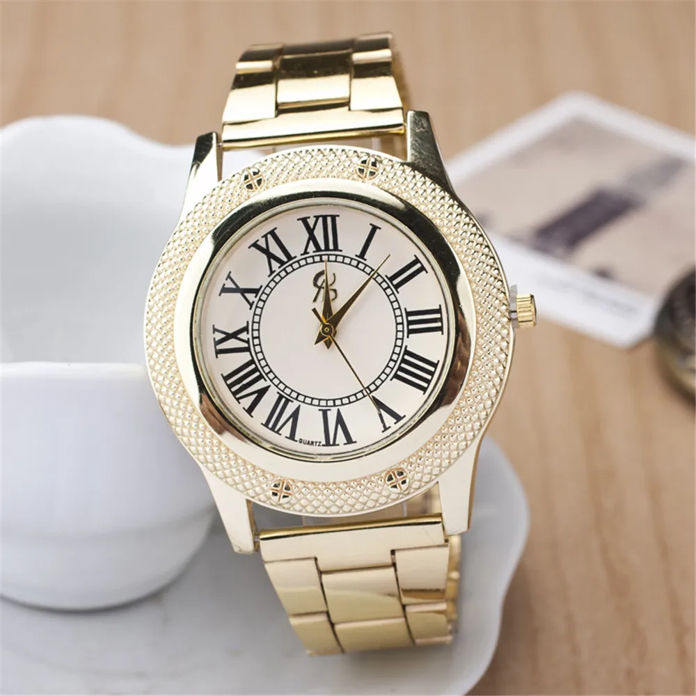 Новинка 2020, Брендовые женские золотые часы Geneva, кварцевые часы из нержавеющей стали личи, мужские повседневные аналоговые часы, Relogio Feminino, хит продаж