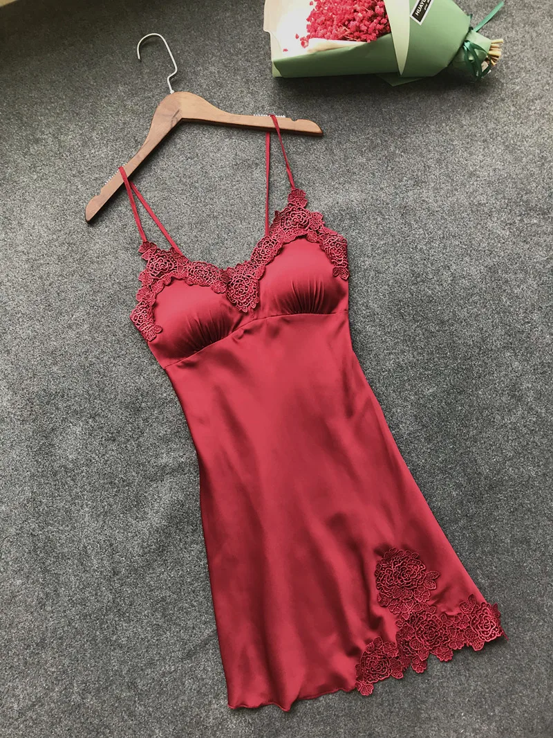 Новые летние 4 предмета в комплекте, для женщин Pyjama из сатина высокого качества кружева сексуальная ночная рубашка с нагрудными вкладышами пижамы