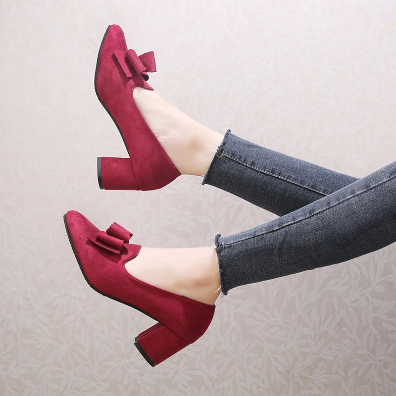 Размера плюс 35-43 женские модельные туфли-лодочки на квадратном ка...