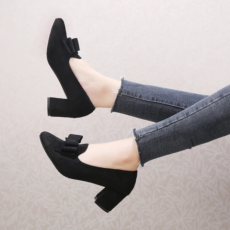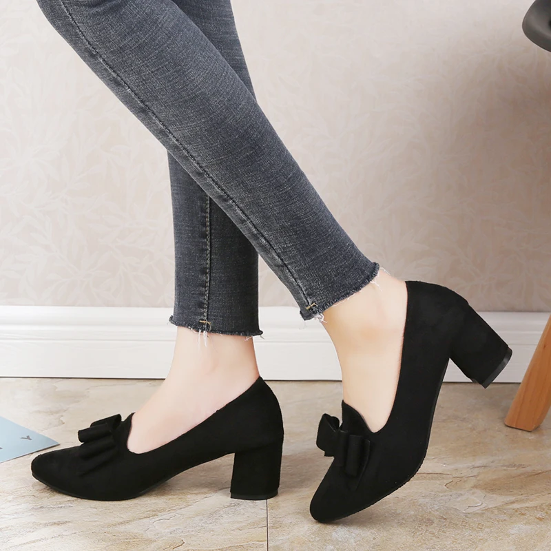 Туфли женские офисные на низком каблуке, искусственная замша, офисн...