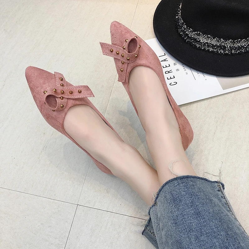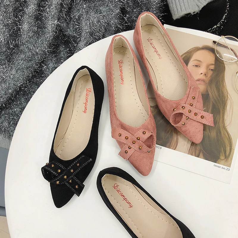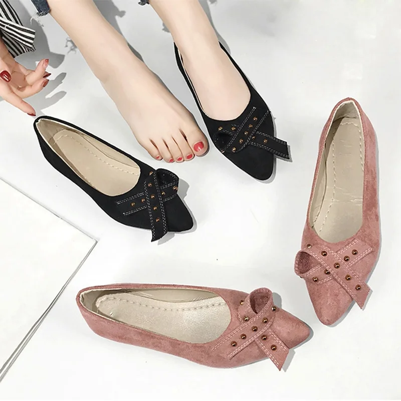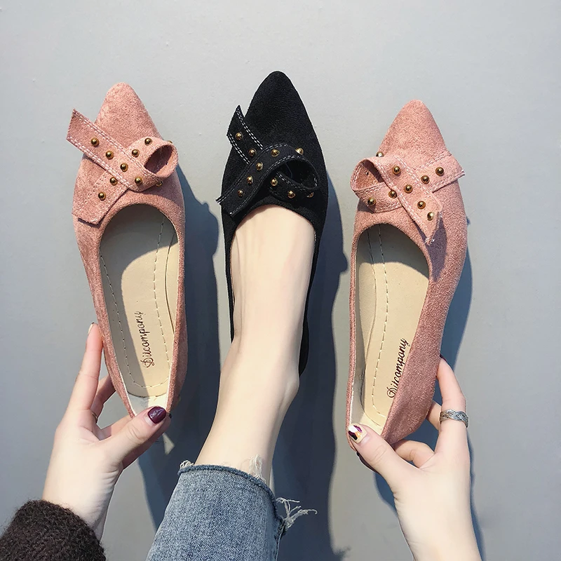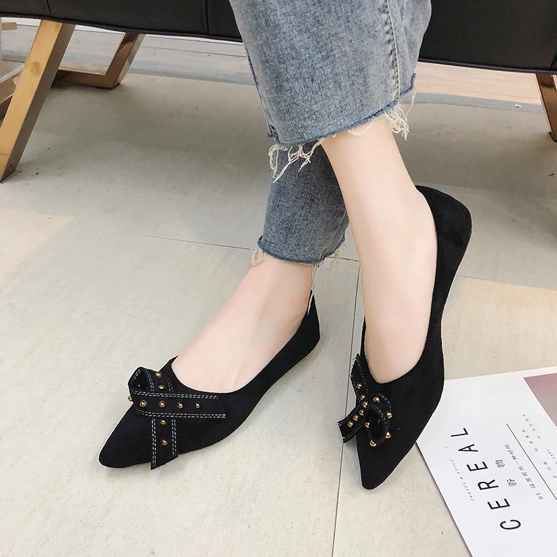Женские туфли на плоской подошве с заклепками; Сезон весна-осень; Слипоны на плоской подошве; Водонепроницаемые туфли с острым носком; Балетки на плоской подошве с бантом; Женская обувь; zapatos mujer; N7104G