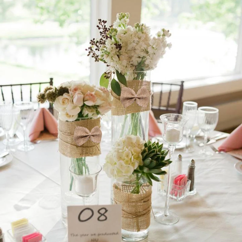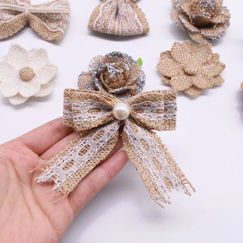Цветы ручной работы из мешковины, 5 шт.лот, винтажные цветы с бантом, деревенские украшения для свадебвечерние НКИ, украшения для середины стола, розы