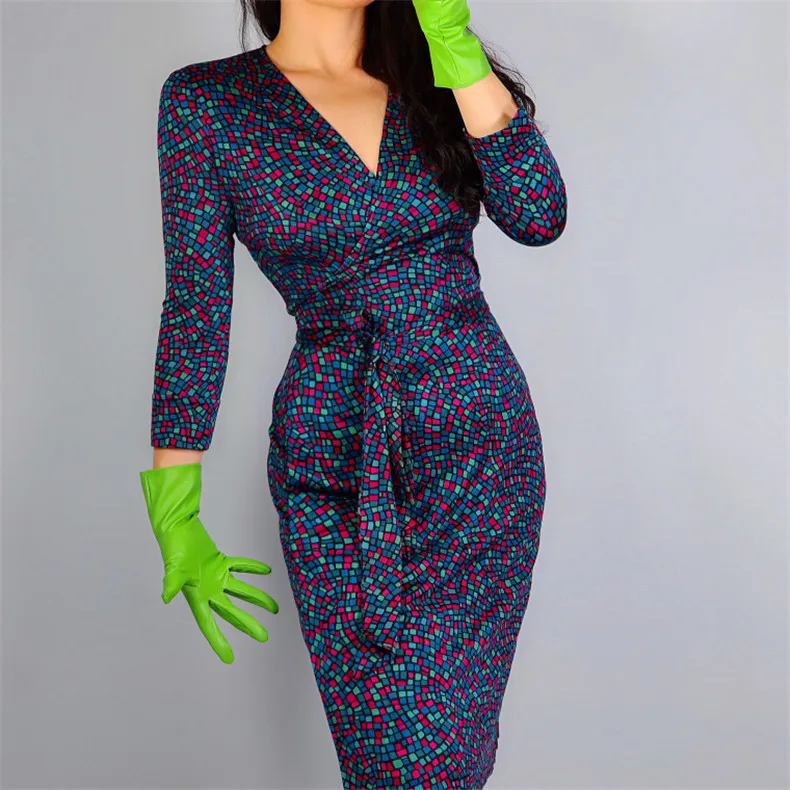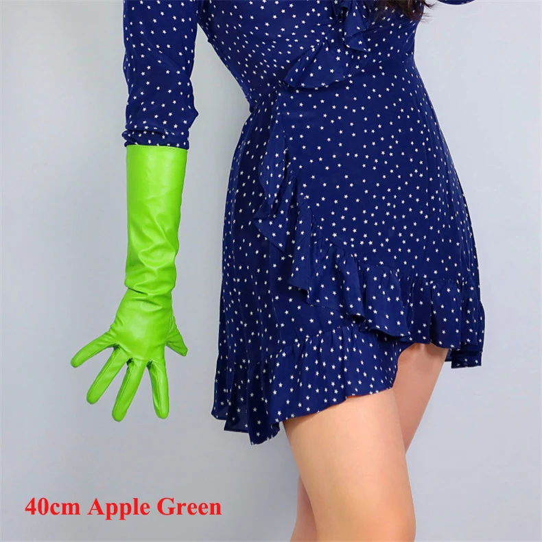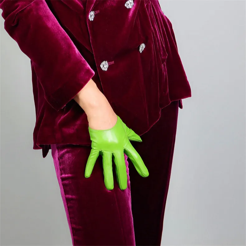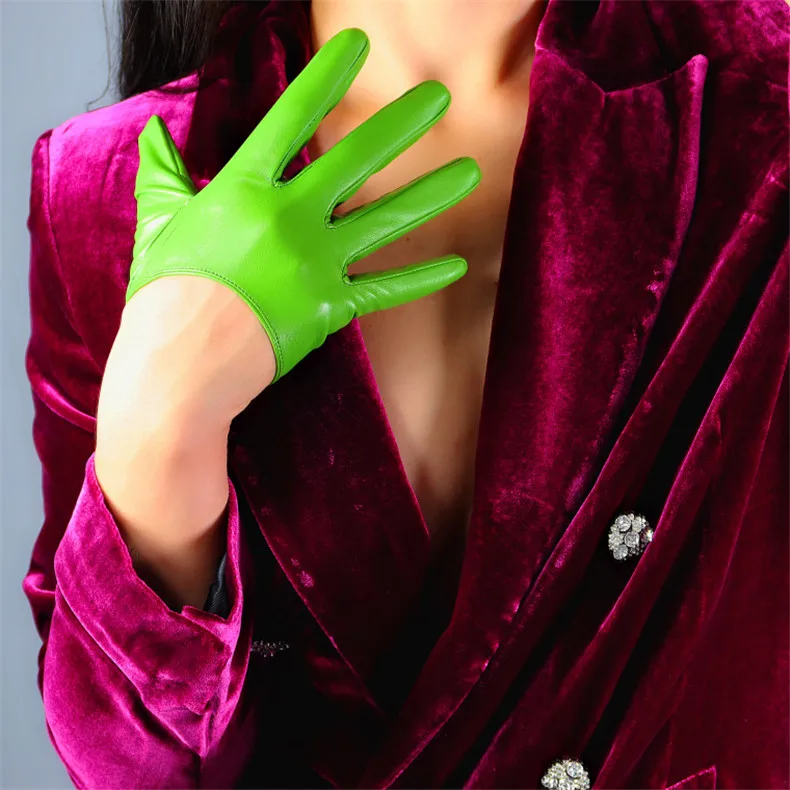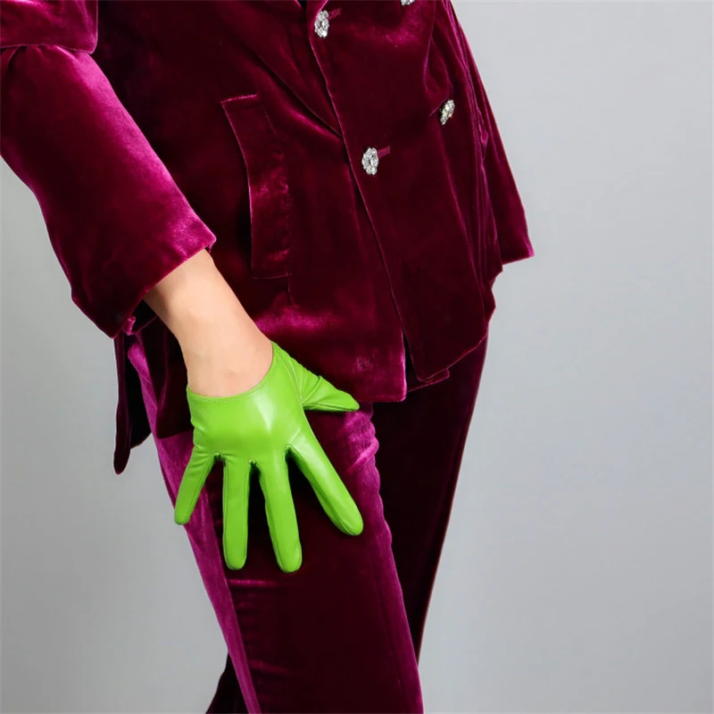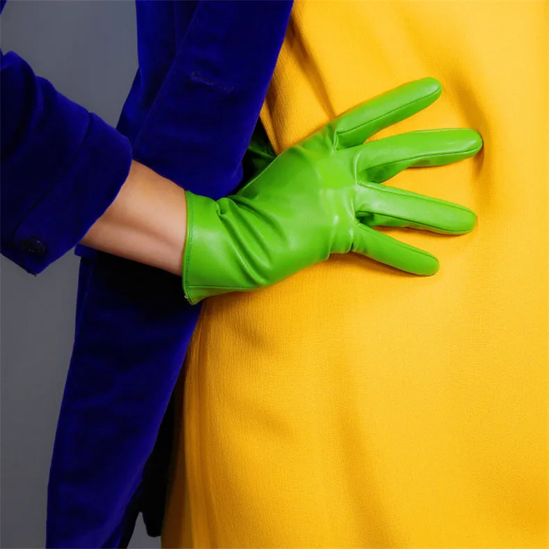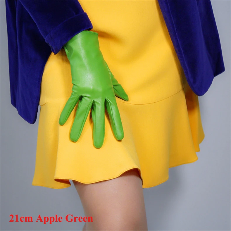 Короткие модные перчатки из искусственной кожи, овчина, 8 дюймов, 21 см, женские перчатки PU193 для запястья, яблока, авокадо, зеленые