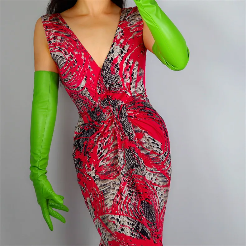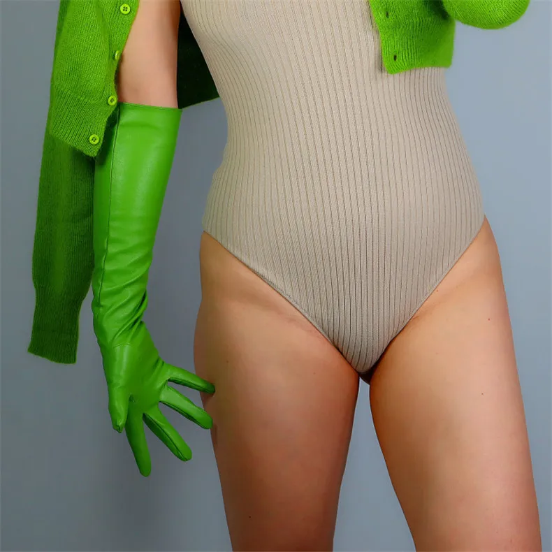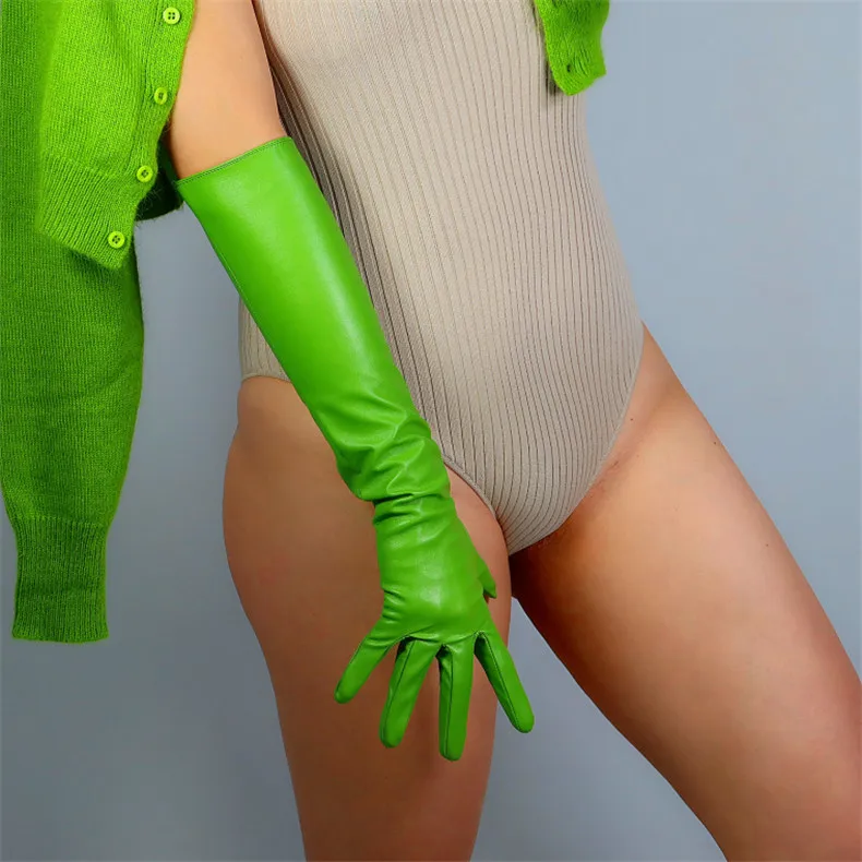 Экстра длинные кожаные перчатки 70 см Искусственная кожа овчины све...