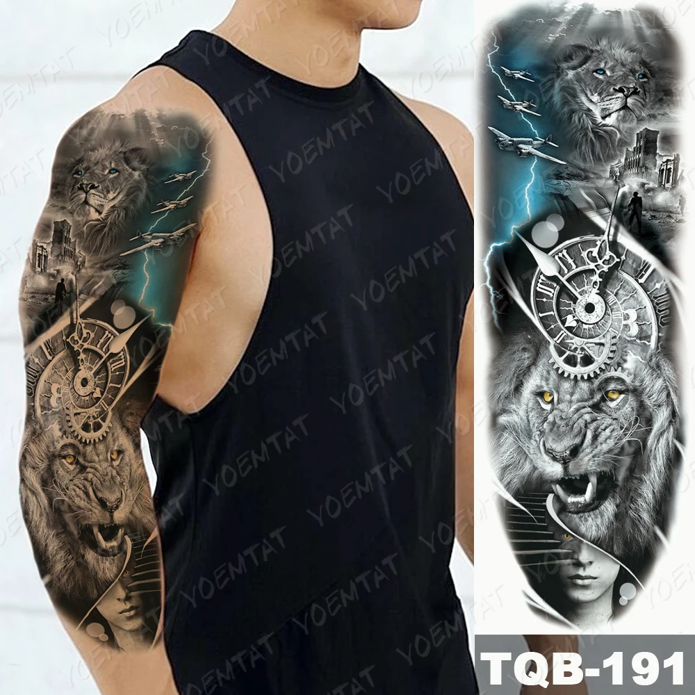 Большой рукав на руку Татуировка Корона Льва корона король Роза водостойкая Временные татуировки наклейка дикий волк Тигр для мужчин полный череп-Тотем тату для женщин