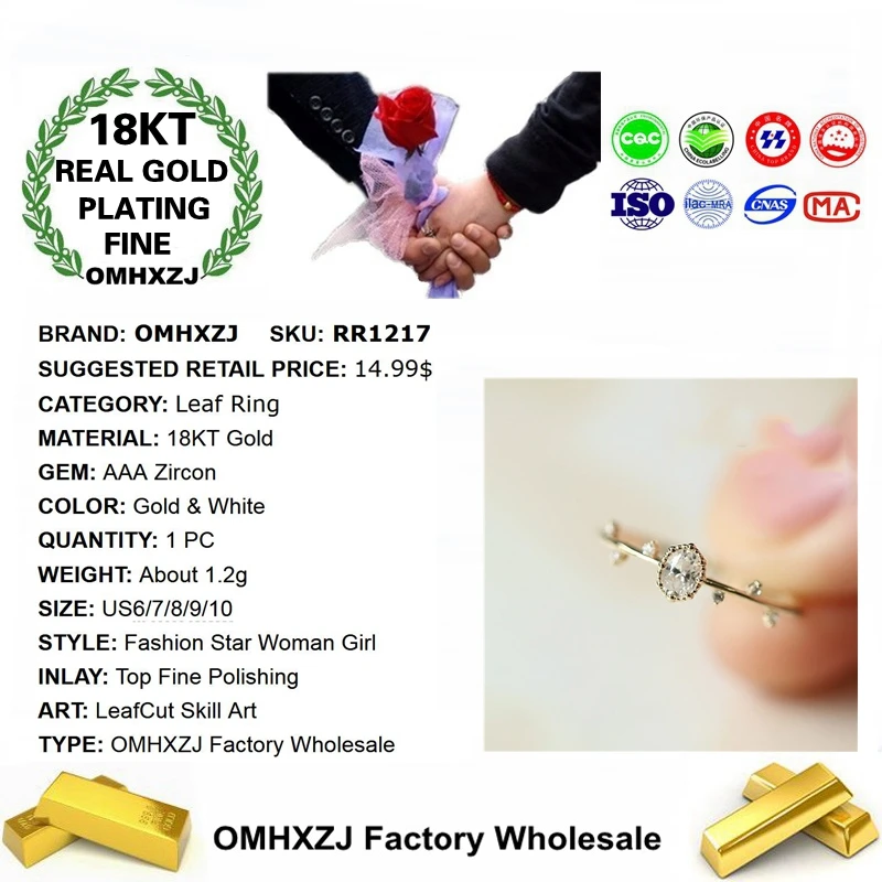 OMHXZJ оптовая продажа RR1217 Европейская мода Изящные женские вечерние свадебные подарки на день рождения тонкое крошечное Золотое кольцо с листом AAA циркон 18KT