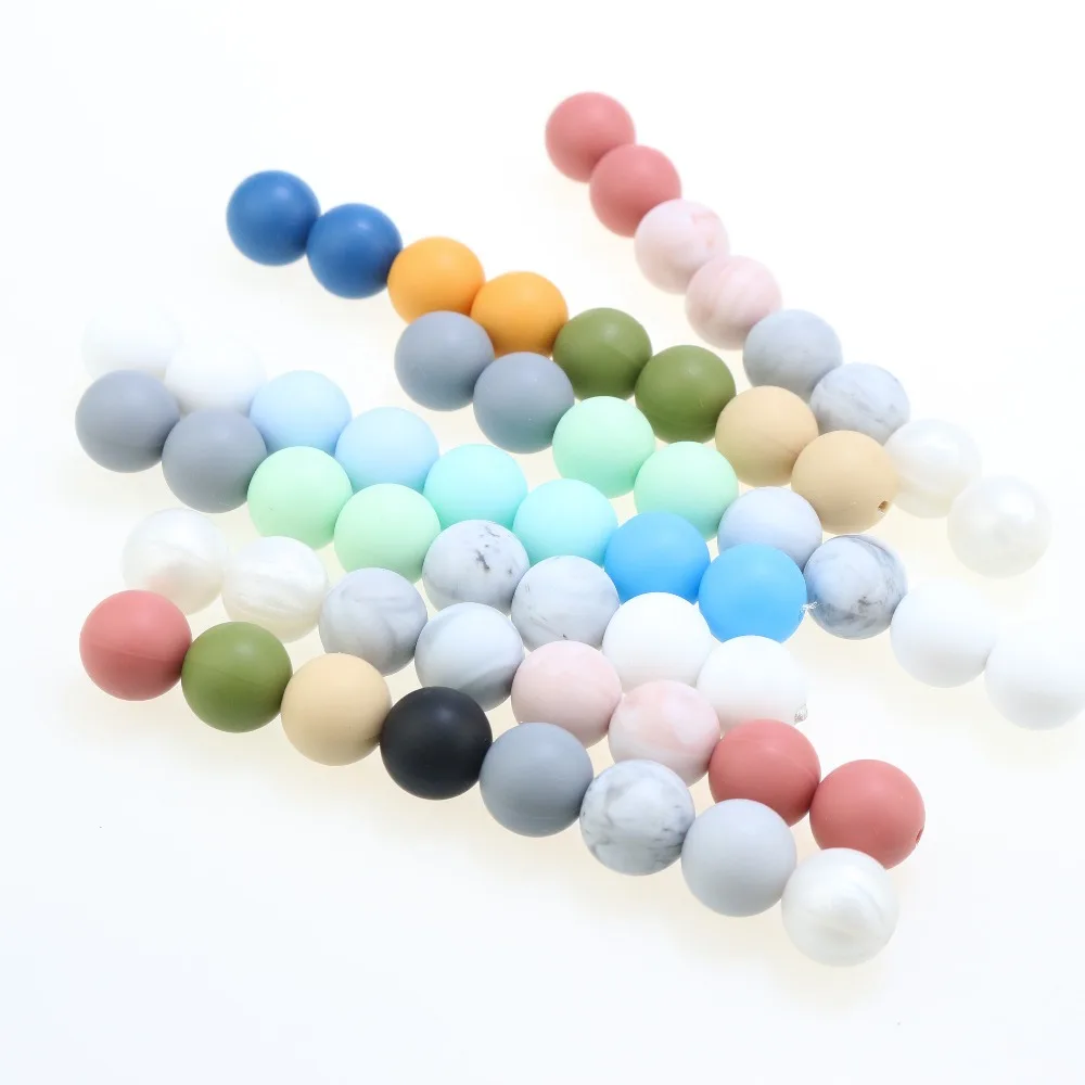 Оптовая продажа, силиконовые бусины 200 шт.лот 15 мм для изготовления ювелирных изделий, цветной круглый шар, детский Прорезыватель для зубов