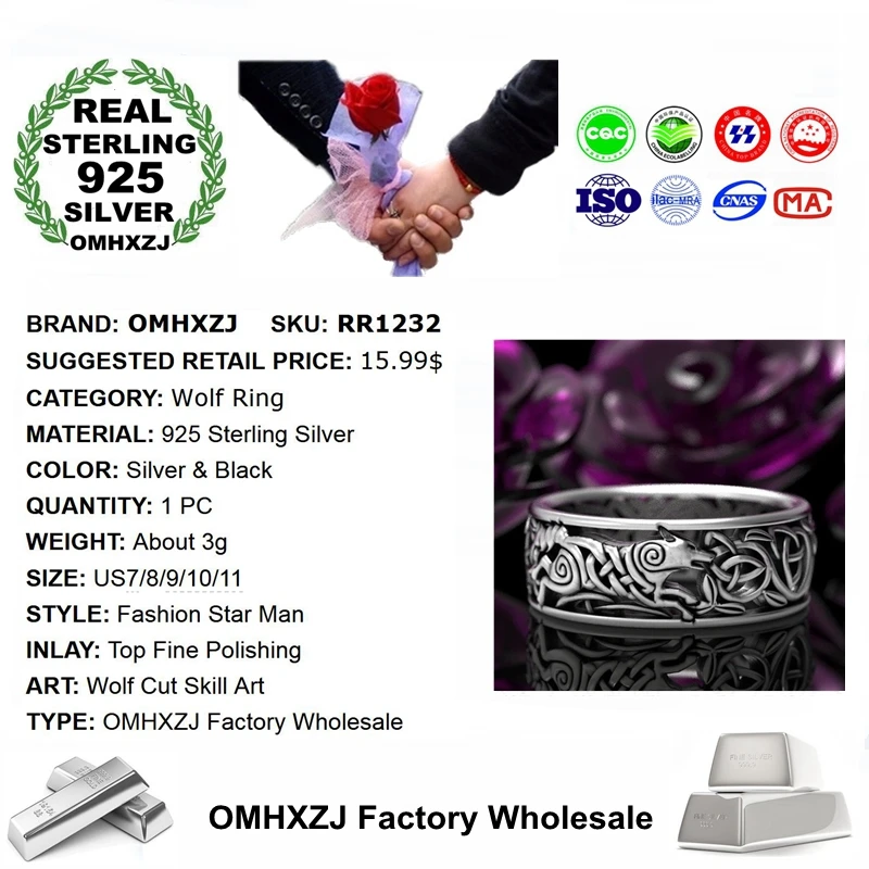 OMHXZJ, оптовая продажа, RR1231, Европейская мода, женский, вечерние ской, вечерний, свадебный подарок, винтажные полые, серебро 925 пробы с волком