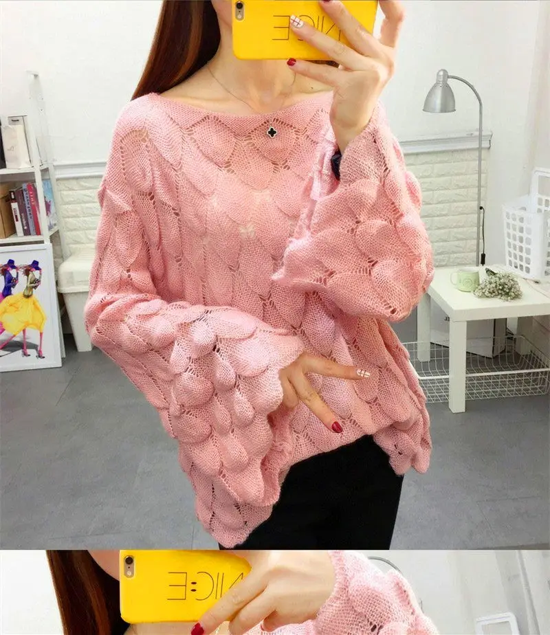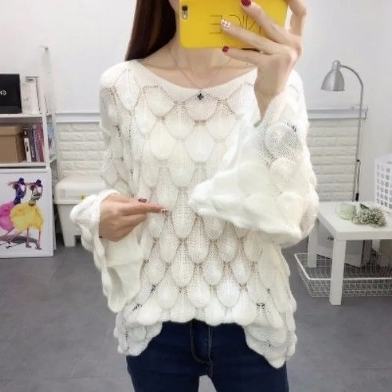 Свитер женский весенне-летний, тонкий, свободный, с разрезами на воротнике, большого размера, с расклешенными рукавами, 2021