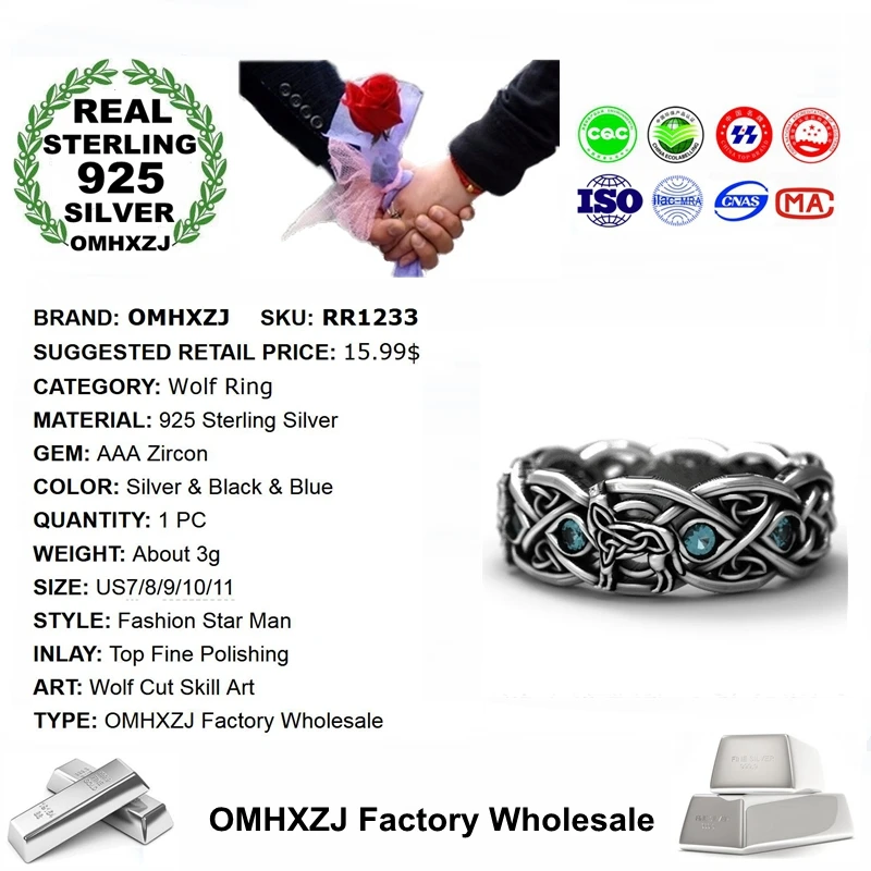 OMHXZJ, оптовая продажа, RR1231, Европейская мода, подарок на день рождения и свадьбу, Винтажное кольцо из стерлингового серебра 925 пробы с цирконием AAA