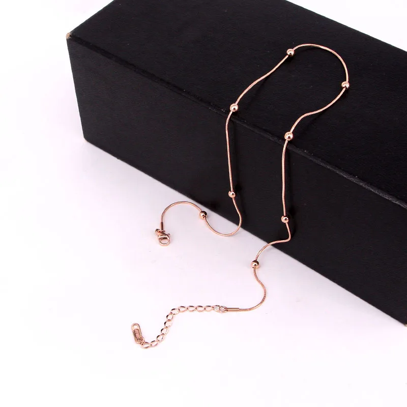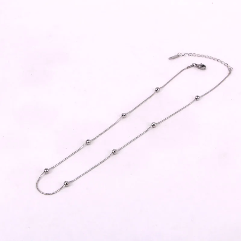 Цепочка Женская до ключицы, 8 стальных шариков, цепочка из змеиных костей