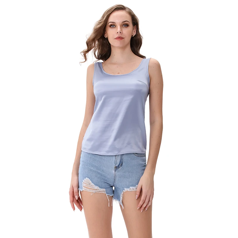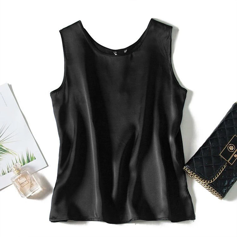 Майка женская атласная с круглым вырезом, шелковая блестящая рубашка без рукавов, уличная одежда в стиле Харадзюку, M30485
