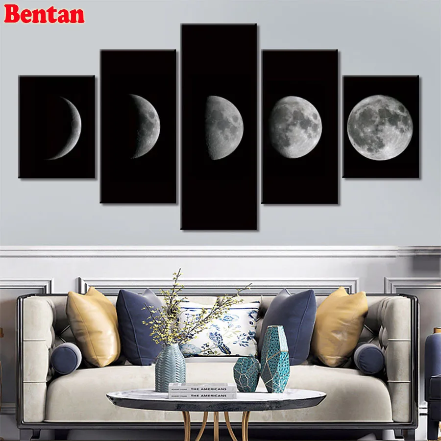 Мульти-картины Алмазная вышивка с Луной 5d diy Алмазная картина 5 шт. квадратная круглая Алмазная мозаика вышивка крестиком черно-белый Декор