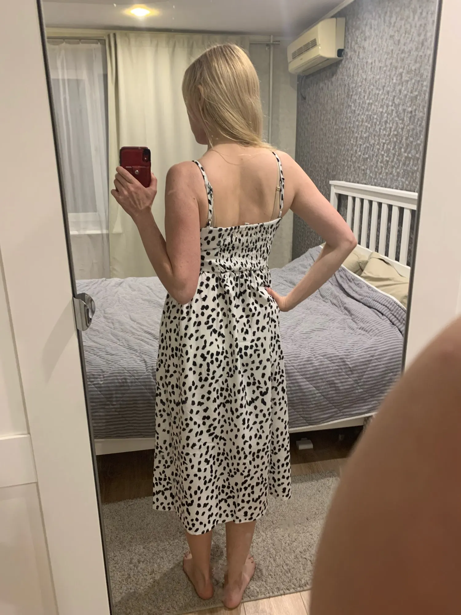 Материал приятный. Пуговицы расстёгиваются. Размер М оказался очень большим: длина до середины голени (мой рост 162см), в груди и в талии очень свободно. ОГ у меня 86см. Размер S подошёл бы лучше