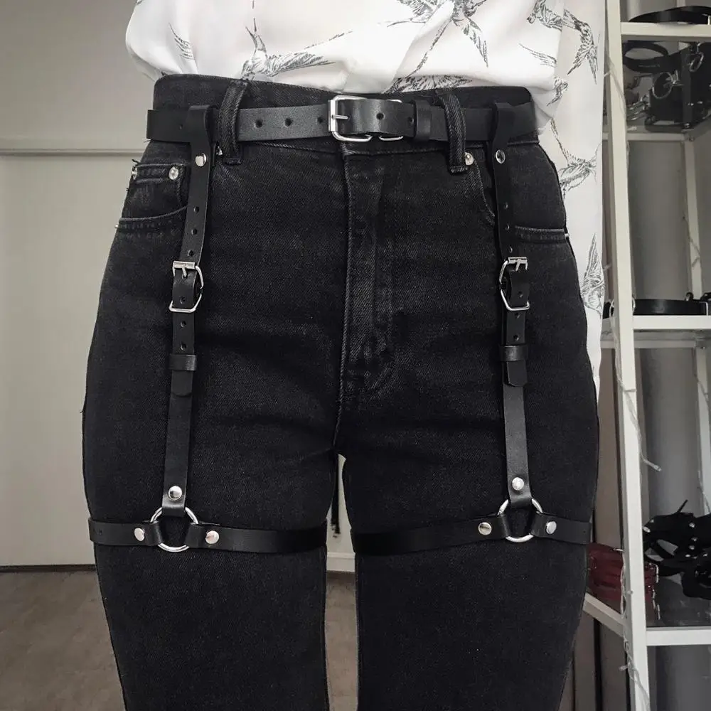 Подвязки женские с регулируемой талией до ног, в стиле Харадзюку, панк, кожаный ремень безопасности