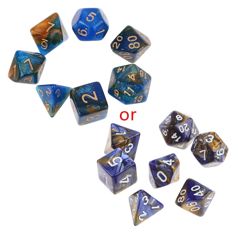 7 шт./компл. дихроматические D4 D6 D8 D10 D12 D20 многогранные кубики цифры циферблаты настольные