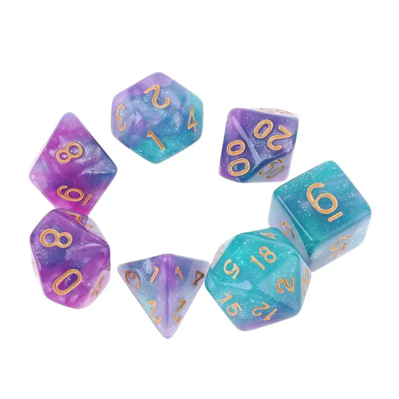 7 шт.компл., Dichromatic D4 D6 D8 D10 D12 D20, многогранные циферблаты, настольные игры