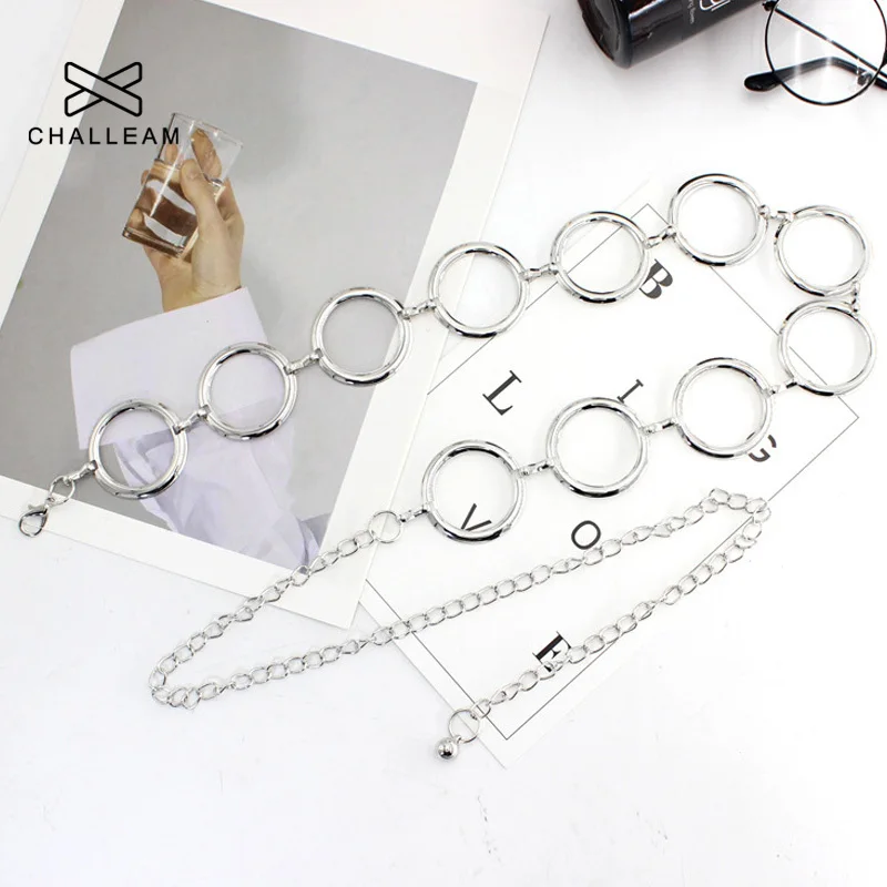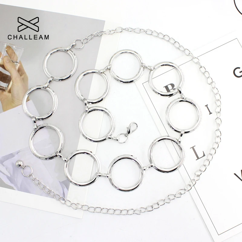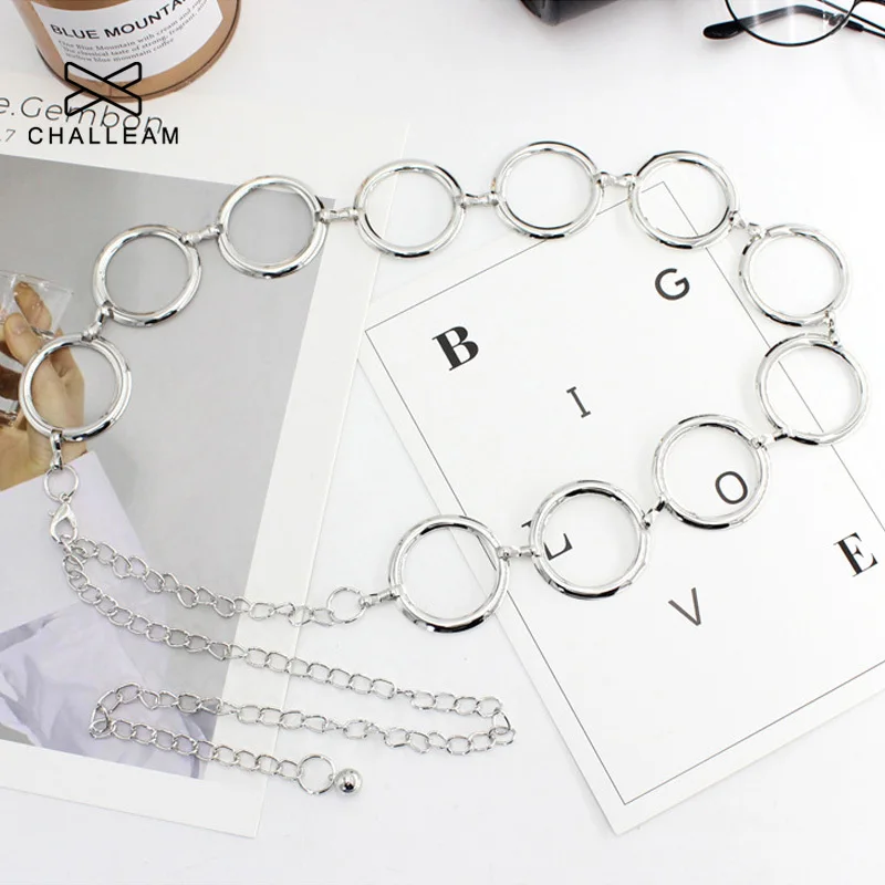 Ремень женский с цепочкой и кольцом, модный элегантный пояс из сплава с круглым кольцом под золото и металл, 2021, 393