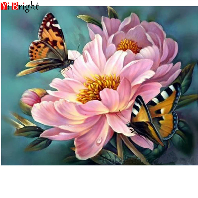 Алмазная живопись цветок Хризантема Бабочка Алмазная Вышивка Полный алмаз вышивка крестиком 5ddiy мозаика украшение дома роспись