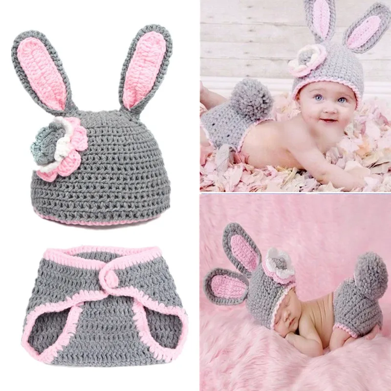 Вязаный костюм для новорожденных, шапочка и штаны, 2 шт.компл.